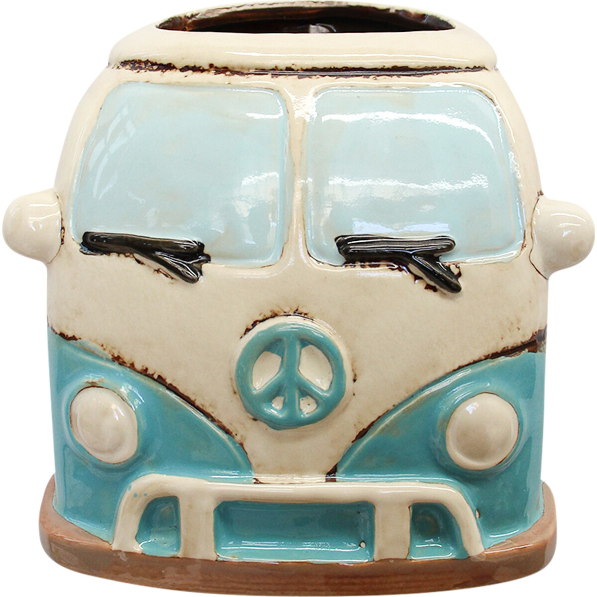 On the face value, the Combi Planter expresses the theme and fact of the popularity of Combi which is especially common as a holiday and vacation minibus. Skilfully crafted using premium quality ceramic material, this planter possesses an alluring decorative appeal which would be heightened even further if it is used in growing ornamental plants such as the Buxus flower, Waratah, and even our national golden wattle. To be able to do this, it is made in a dimension which measures 16 centimetres in length, 12 centimetres in width, and 17 centimetres in height.