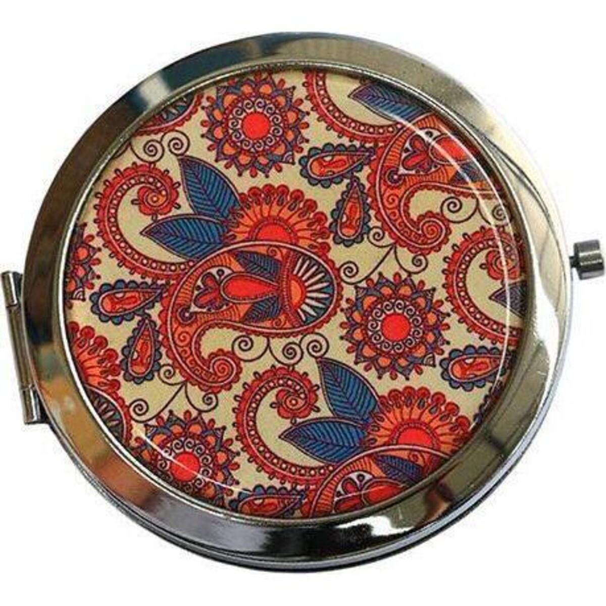 Quite a show stealer if one were to not count your amazingly well groomed which has been possible because of the use of this compact mirror. This is a lovely compact with a truly small and sleek size that will fit not juts into the palm of your hand with ease but be easy to grip and place in any shape and size of bag - be it a slim wristlet or a hobo or even a slim evening purse. It is merely 7 cm in diameter and holds within to mirrors which are high quality allowing you a clear image of yourself - one more magnified than the other. The trim is bright and makes the design look all the more outstanding in contrast. The classic pattern adds touch of class and sophistication to this accessory and would add also to your look when you hold it in your hand. Be it to fix your makeup of hair , or simply to see if your necklace is not turned over, there could be so many reason when a mirror is necessary and this easy to click open and shut, compact will give you that ease of usage in simple flip of cover