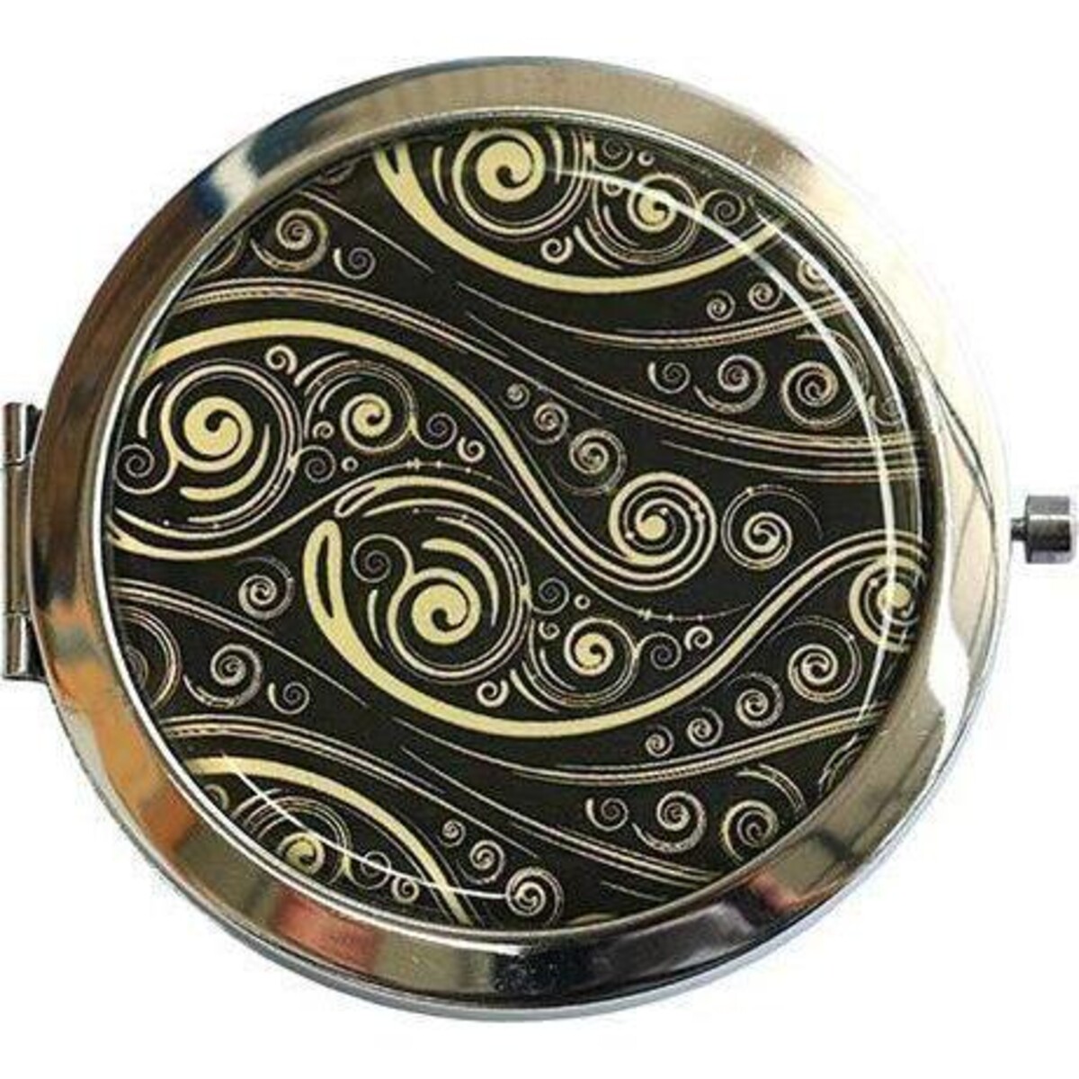 Evening do get long, car rides leave hair tousled and the shine on the face gets way too much for you to like it - a simpe way to get it all back looking the way it should is but popping open your personal little mirror and fixing the damage. Yes - your very own tiny compact that has flawlessly great quality mirror for perfect image, to help you look even for the minutest distortions in your face. Its tiny smart styling will allow it to fit into wristlets, handbags, clutches and the likes. Smart, savvy and correctly concerned about how you look - carry this compact each time you suspect the length of the evening. A woman's best friend is what I call it - would you not? After all it does give you an honest look at yourself - . The black swirly pattern is one smart design to have on a compact that a diva like you ought to carry. All of 7 cm in diameter, its opens and closes with simple click and stays intact in its polish and look, despite much handling.
