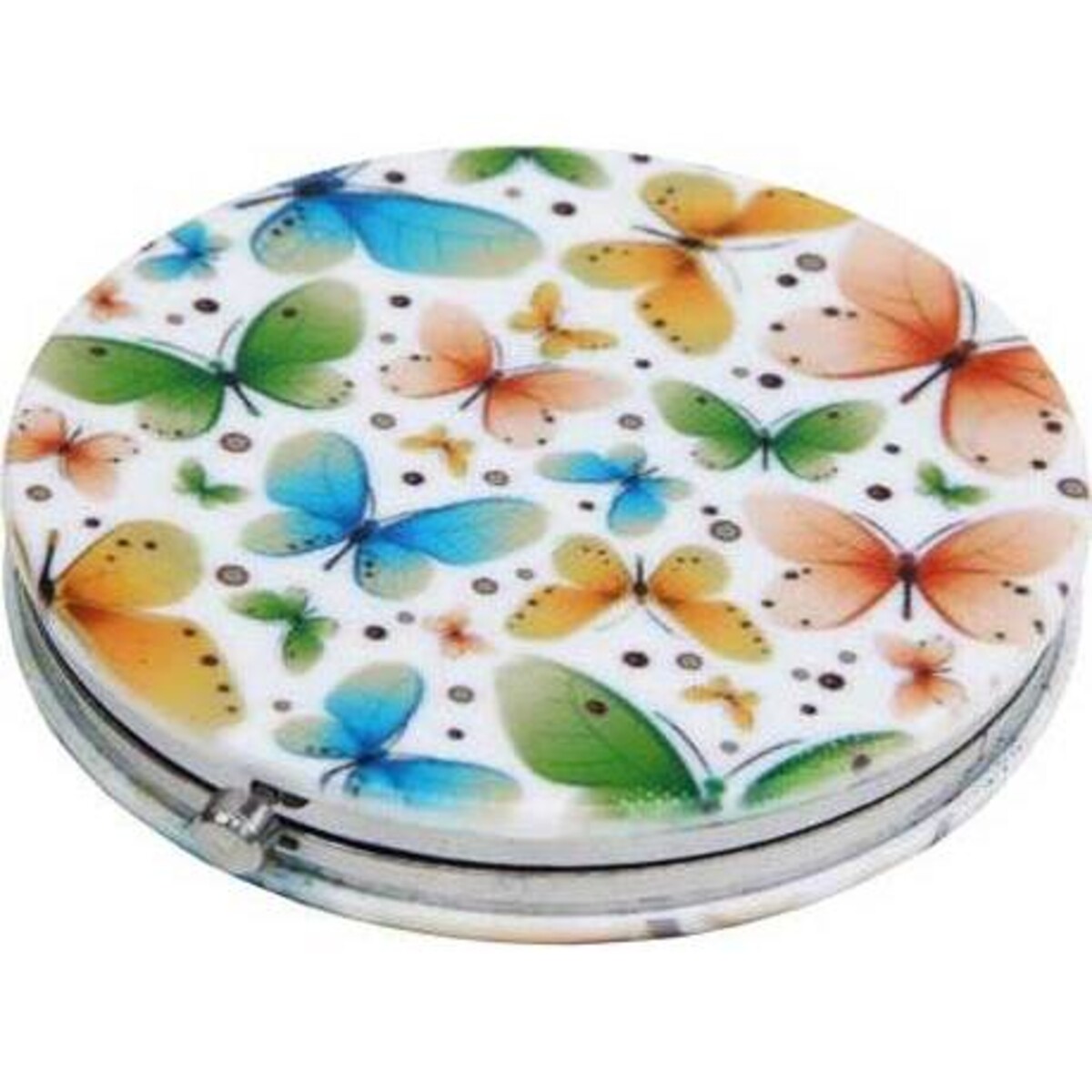 • Quick snap button opening with a hinged lid that hides the mirror inside.