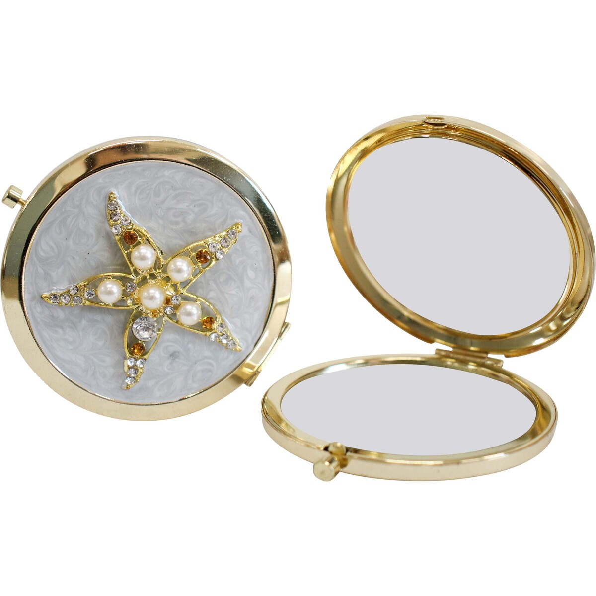 We’ve got to talk about how beautiful this Compact Sky Starfish mirror is. Our team is loving the way it captures that whole dreamy beachside feel - it’s not your usual compact at all, and we really think that’s what will make it stand out in any gift or homewares range. The starfish design looks handpicked from a treasure trove, with its lustrous pearls and sparkling glass stones set against delicate enamel - very coastal chic, and a bit of Art Deco elegance thrown in too. The gold metal frame gives it a vintage edge.
