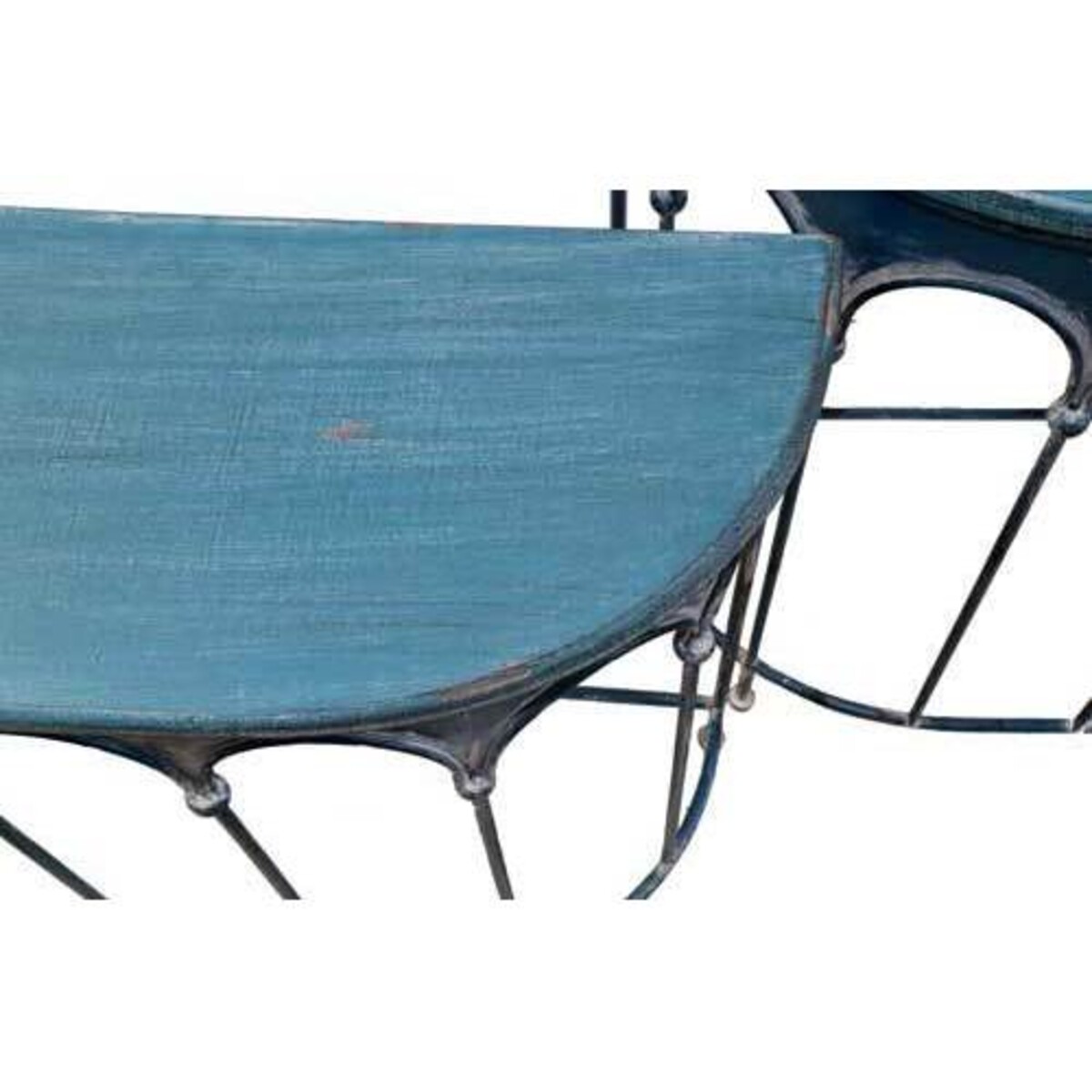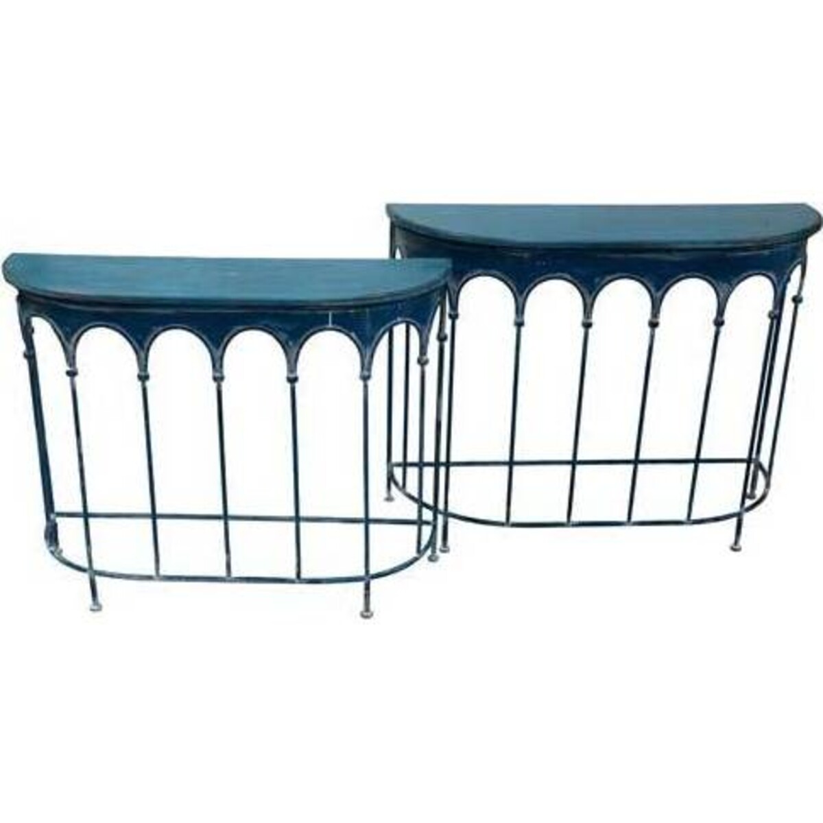 These blue metal consoles add a lovely burst of colour to any room and sit flush against the wall so they take up less space than a standard table. Their rounded edges allow them to fit safely into almost any home while the arch design adds a punch of style. The consoles have an antique appearance as if they've been well-used and loved for many years, and they'll certainly be a great addition to your home.