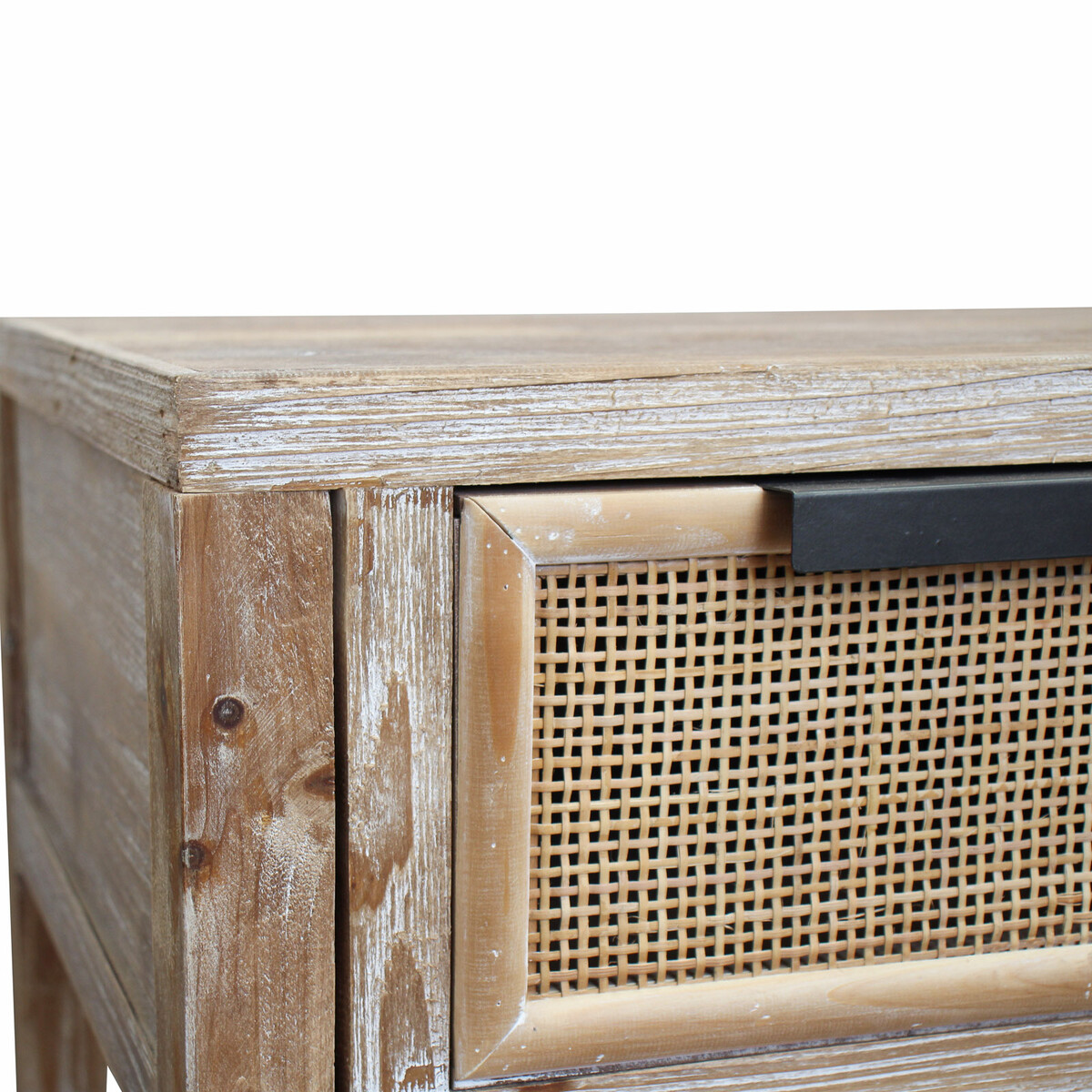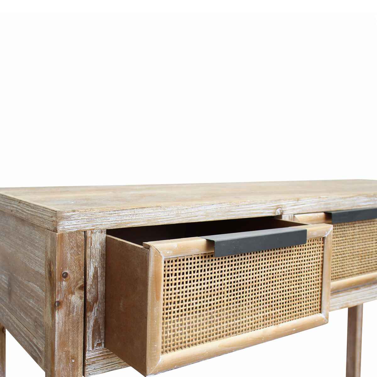 This Console Marco piece really brings a sense of relaxed vintage style to any space - we keep seeing customers gravitating towards that ‘breezy coastal meets classic Parisian’ vibe, and this fits right in. The rustic fir frame has this washed finish that softens everything up, but it’s those cane-rattan drawer fronts and the solid metal handles that make it a conversation starter. There’s just something about that natural woven look. And it works hard, too - three full-size drawers mean there’s practical storage for keys, paperwork, stationery, tech chargers - all the annoying daily bits you want out of sight.