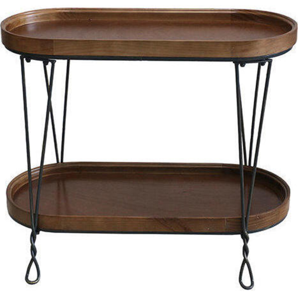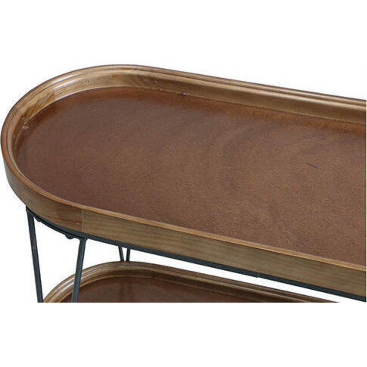 Make the right choice in furniture count towards making your interiors come alive with style and great taste. In the case of this poplar wood, solidly styled console, you would be achieving that and more. With two very prettily designed oval tray like sections, they would allow display as well as help keep lamps, crockery and books. You could use it as much as a regular console as an extension table. The well-polished wood and the combination of metal with its unique twisted leg design adds so much of impact to your interiors. Create more table top space, be it for magazines that you want to place nearby, cookie jar, chocolates or your embroidery paraphernalia-place this table in your room and you would make space for all your little possessions. Its design is worth displaying in the main living room, and yet its usability and solid structuring makes it worthy of any room in your home where tables are a must. Style, innovative design and great quality material makes it a lovely buy.