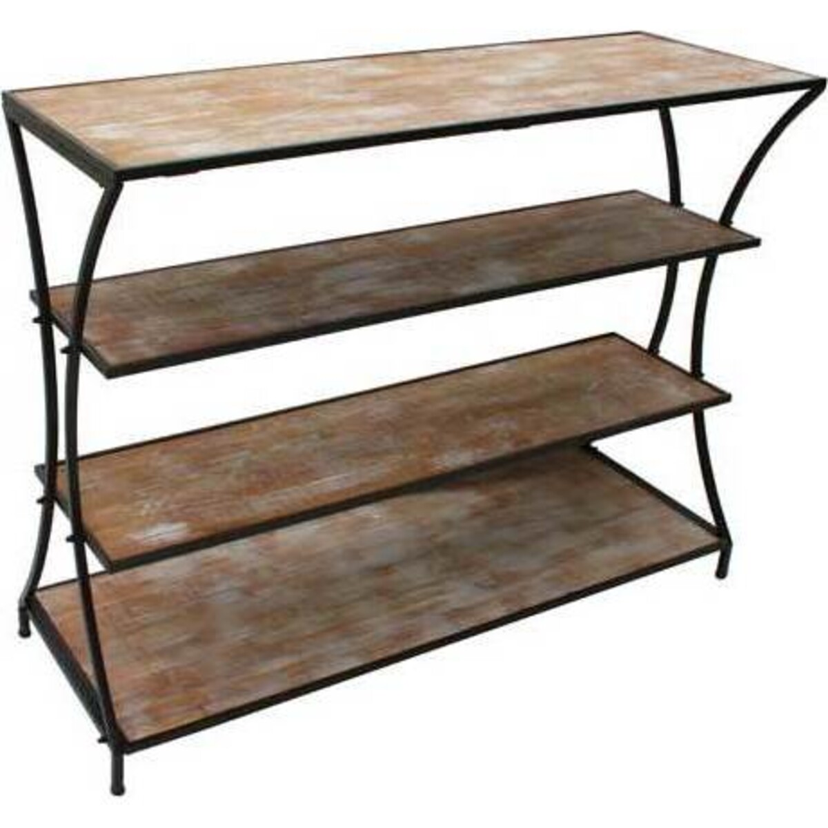 Console Whitewash Scaffe measures 122x45x93 cm. It is a beautiful piece of furnishing comprising of four whitewashed bars of wood held together in ascending order on a framework of metal. This compact storage unit can be set up in entryways affect the architectural style of a room. Offices would find it handy for placing keys, handbags, mail and other kinds of small items for staff working there. Console Whitewash Scaffe delivers the benefit of convenience when situated at a library or home. Individuals accessing such locations get to place and pick up their personal wares with convenience.