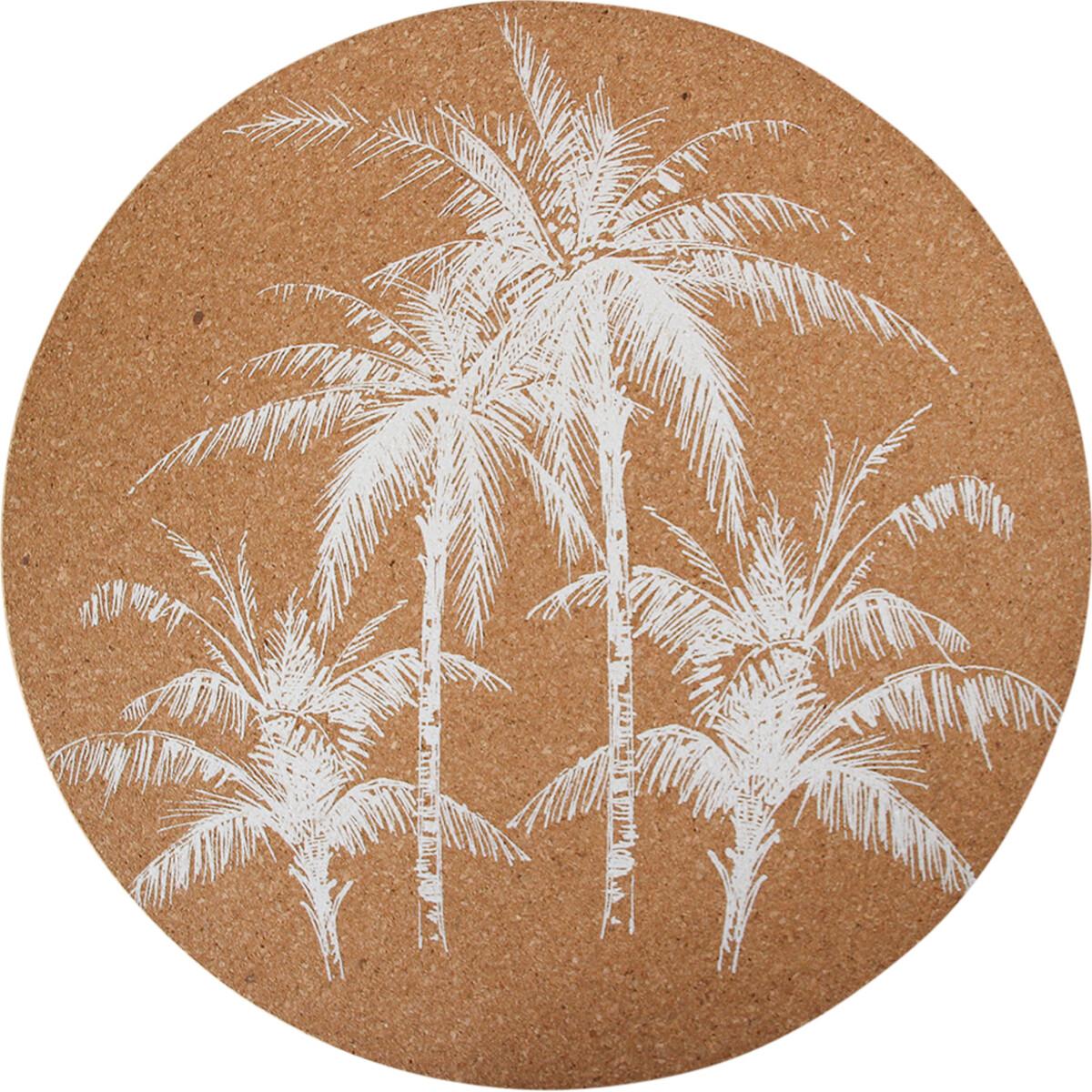 The Cork Placemat S/4 Palm offers your customers all the benefits that conventional placemats offer such as those mentioned above. Apart from this expected practical functionality, this palm decorated placemat commands visual interest due to its appealing palm trees painting. The brown surface of each of the placemats creates a perfect backdrop as the image of palm trees are rendered on this brown surface using white colour. The image features four depicted palm trees with the two tallest placemats being in the centre while at each side is a short palm tree.