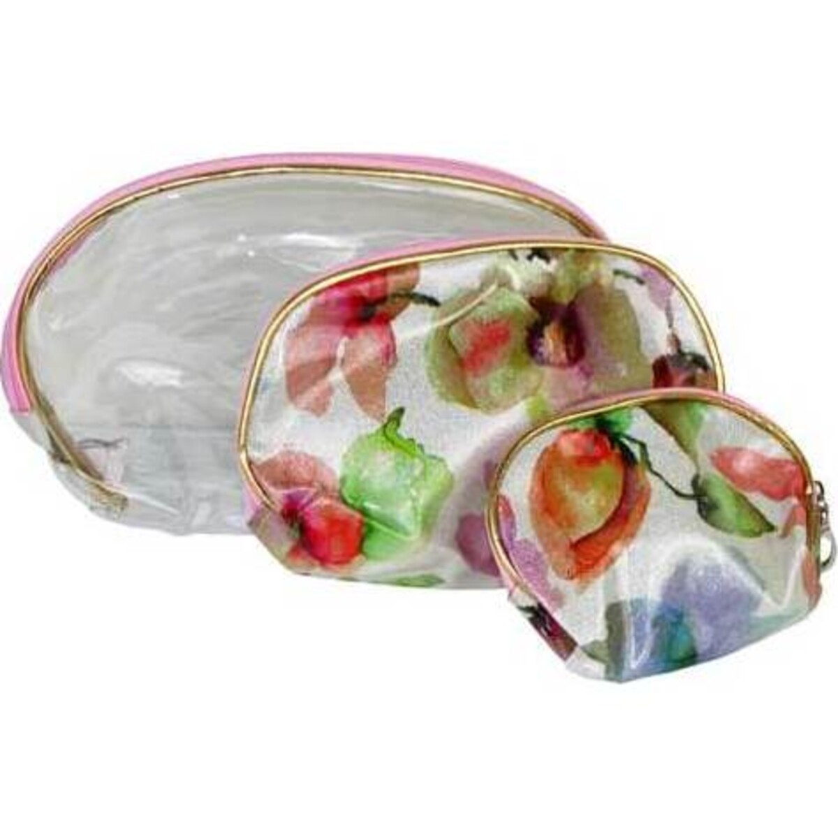 Cosmetic Bag Pearly Poppies S/3 features three trendy bags made using fabric, the largest of which has the measurements of 28x17x3 cm. It is whitish with prints of pearly poppies. The main colours visible on this tri - set of cosmetic bags include pink, red, green and purple. The fabric utilized is waterproof and presents with a noticeable shiny element that could go well with various kinds of outfits. One could buy this product - set and present it as a gift to a loved one or friend. Alternatively, Cosmetic Bag Pearly Poppies S/3 can make a good