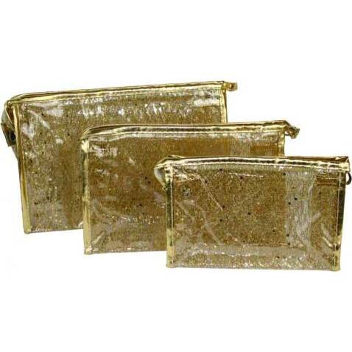 Cosmetic Bag Gold Print S/3 is a product consisting of three bags of variable size which have gold prints. The dimensions of the largest one are 27X16X5 cm and this set affords a woman a sense of flexibility when going outdoors in terms of choice. Any of the bags selected would look great to bear during a high - end occasion. It all depends upon the volume of content a woman desires to carry inside them. One can buy this set of cosmetic bags for use when going for picnics, dinner dates as well as other critical interpersonal functions. The fabric construction of these clutch bags makes them comfortable to carry around without feeling burdened.
