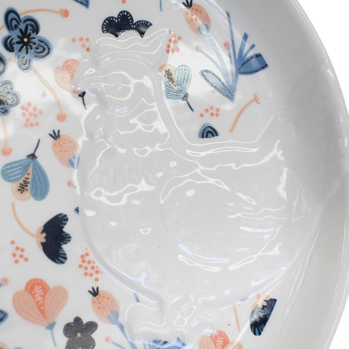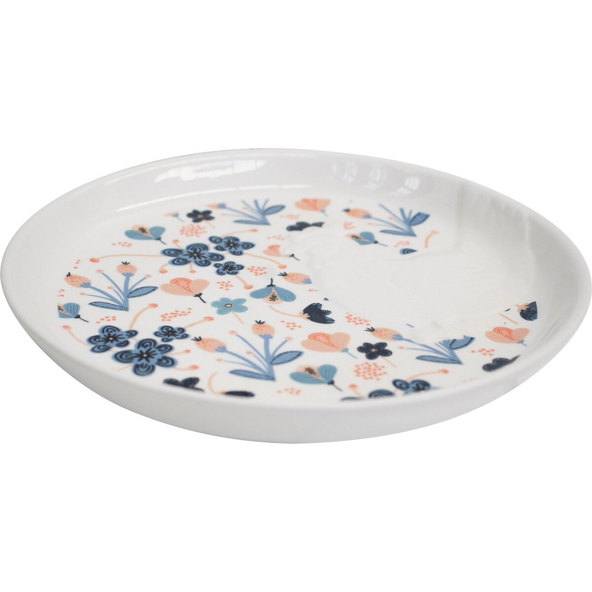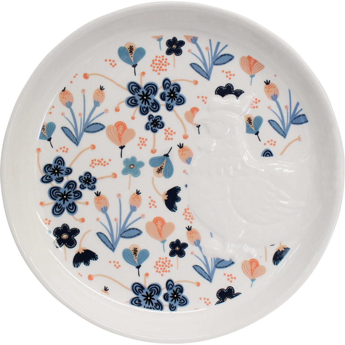 We love items that combine a bit of countryside nostalgia with something that works in a modern home - and our Cottage Hen Dessert Plate does exactly that. It's ceramic and sturdy, 16.5x16.5x2.5cm, and has this really interesting embossed hen design on one side that is - well, it’s really tactile and a bit quirky in person. The floral motif brings a touch of warmth without going overboard. And the palette is so inviting - soft blues, peaches, and navy paired with crisp white. It isn’t loud or too muted - it’s just a lovely balance.