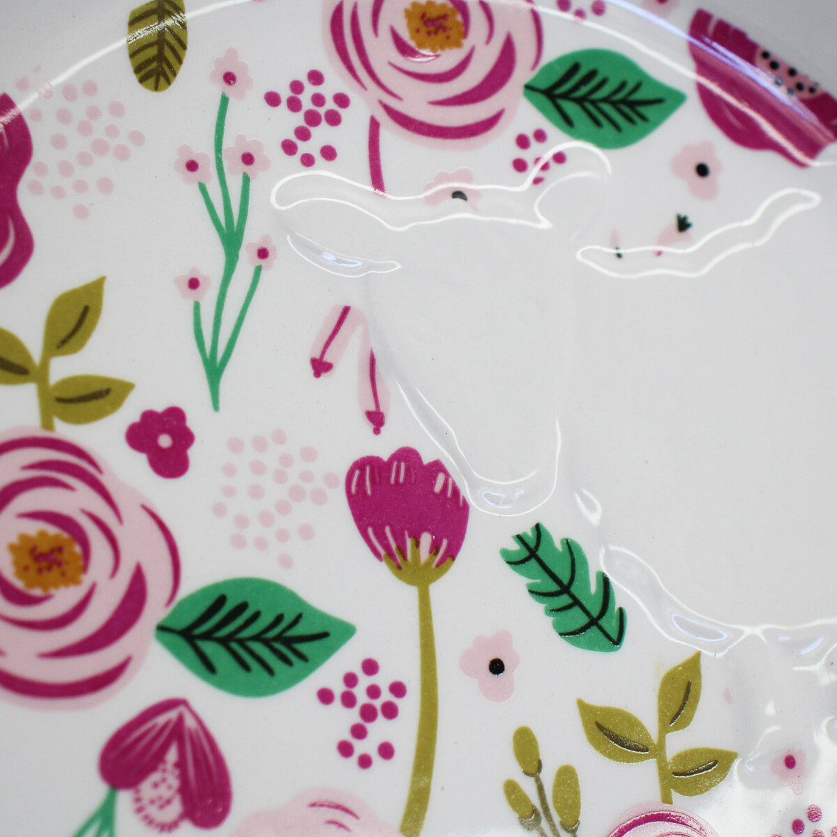 We keep coming back to this one because it really is just so cheerful and fun. Sometimes we need a plate in the room that makes you smile, yeah? That’s why we really love this Cottage Sheep Dessert Plate. The design is just such a fresh burst of colour with its pink florals, green and gold leaves, all hand-painted in that slightly whimsical style. The real charm comes from the sheep motif - subtly raised so it’s not immediately obvious at first glance - but it’s definitely there when you take a closer look. Just brings a playful farmy feel that mixes so well with the cottage core trend.