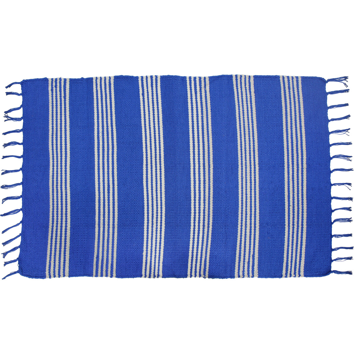 Our Cotton Mat Boathouse is a classic coastal beauty that customers won't be able to resist. That rich blue and white stripe instantly makes you think of summer getaways, lazy Sunday afternoons, or that effortless surf-and-sand style. It's a sturdy 60x90cm rug made from soft cotton with fun tassels at the edge, so it's got plenty of personality and durability. Perfect for beach houses, coastal escapes, or any space that needs a dose of ocean-inspired charm - your customers are going to love this one.