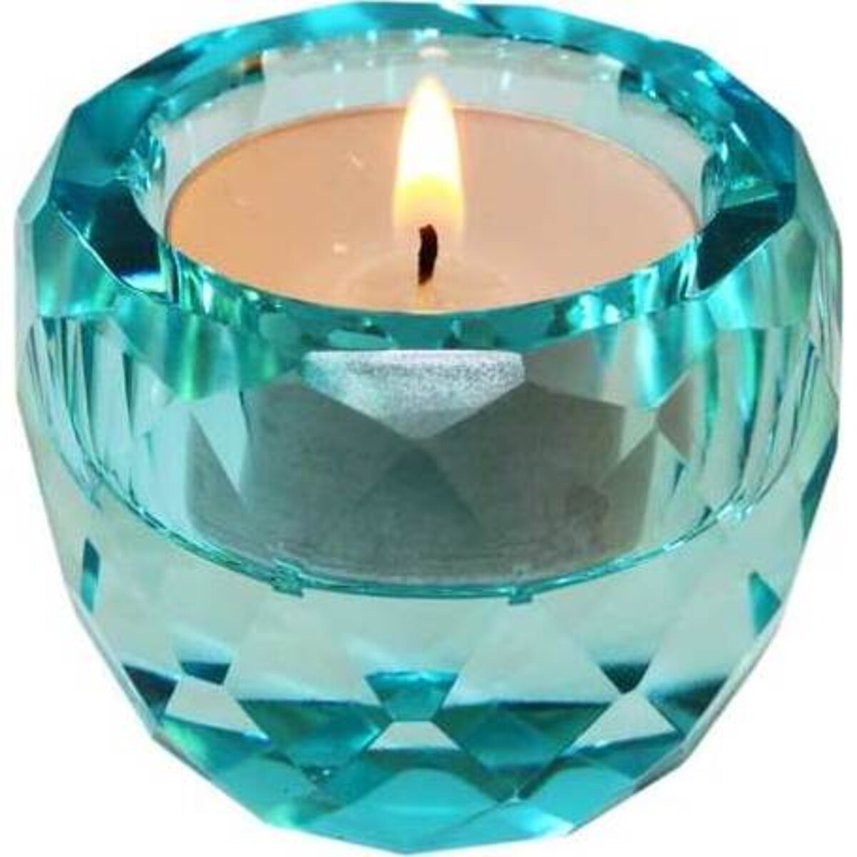 It features a lovely aqua coloured crystal on the outside with room at the center for a tealight candle. The cuts of the crystal reflect the light from the candle flame as well as the surrounding light and make it shine beautifully. This decorative accent will add a little sparkle to any small area whether it's on a mantel or as part of your romantic dinner with your love. It may look expensive, but you'll be happy to know you didn't have to shell out a lot of cash to get a lot of luxury.
