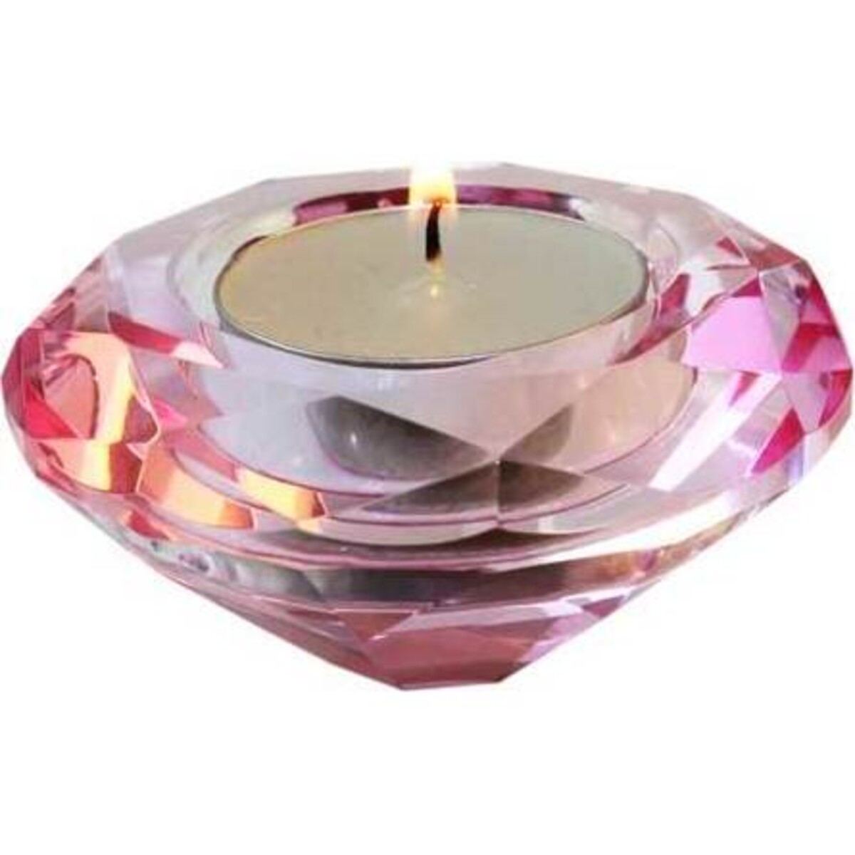 These Pink Crystal Votives are for those who love diamonds and everything they represent. They aren't for those who think simple is the way to go with décor, they're for those who value the look of elegance and relish any chance to add a touch of girly beauty to their home. The votive sits in the center of this pink decorative piece and the light reflects off every angle beautifully. It's a way to incorporate diamonds into the décor without the heavy price tag.