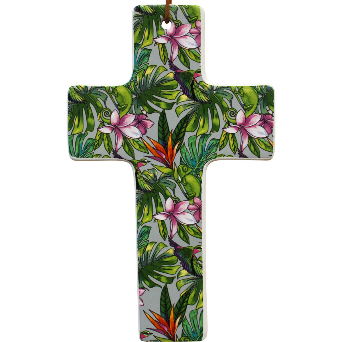 Be it for the wall in your own space -for those quiet moments when you bow your head to your pursuit of the Divine-or for simply adding a serene and calm kind of resplendence to your walls-this ceramic made beauty is a great way to do so. Handcrafted from moulded ceramic, this cross is a mere 23 cm with a width of 14 cm that shows off the beauty of the foliage in all its deep and intense kind of colours. Very clear and well-defined print adds to its looks. The Cross is a great addition for any wall space-or could be placed on a shelf in your prayer altar. Would also make a great gift especially with the festive season just round the corner, this would make a great choice. The ceramic has bene treated to the best firing technique which creates its great sheen. The smoothness of the ceramic also speaks of the premium nature of this hand finished accent.