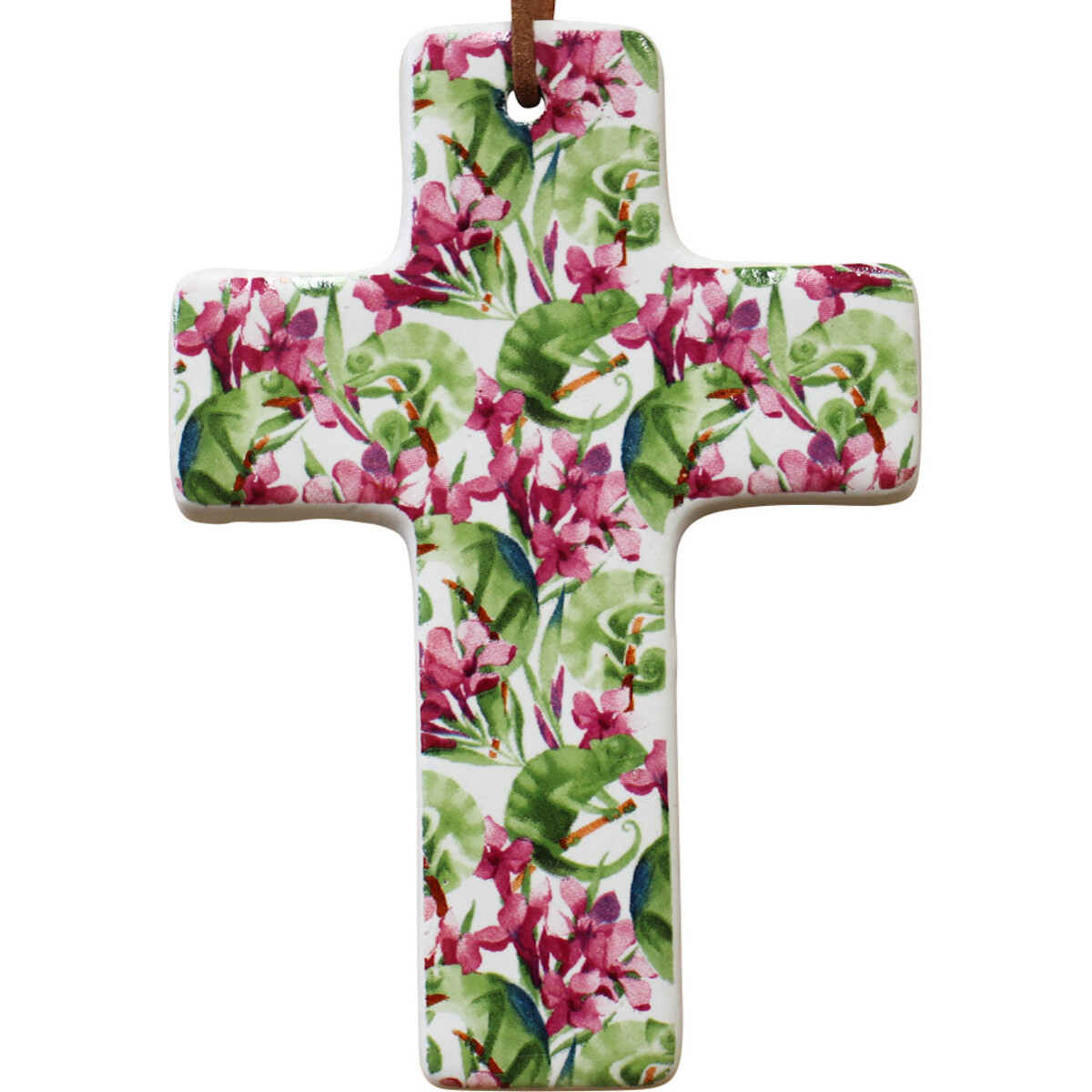 Whether to gift it to a devour or to help make it part of your own spaces, this delightfully designed piece brings with itself, the most amazing looking colourful fa?ßade. The ink blossoms in profusion cannot hide the distinctive shape of the iguanas. The bulging eyes, the curled-up tail and the almost prehistoric looks-all of these make this nature inspired Cross attain this completely new and vibrantly unique presence. Give it away like any other gift or place this in your prayer altar and invite fresh new look there. Will work fabulously like any other accent in your spaces. A tropical freshness is what you instantly connect to it along with the presence of so many gorgeous colours that bring in a certain cheeriness.