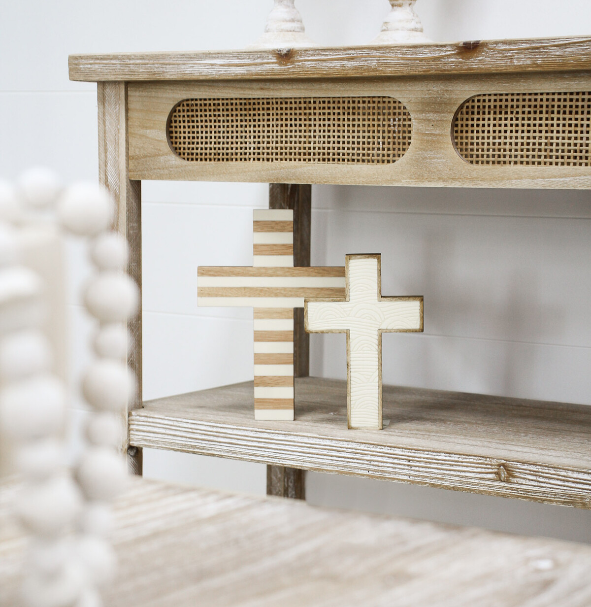 Possessive of an on-trend classic design, this Cross Lrg Riverina is one of our eclectic decorative items which have continued to be a consistently selling ornament ever since its addition to our huge collection of Wholesale Decorative Items. The ornament is crafted using top quality wood, acrylic and medium density fibreboard materials. The surface of the cross is painted in a horizontally inclined striped design through the combination of white and wooden shades of brown. There are as many as 32 of this ornament in every carton which you order today.