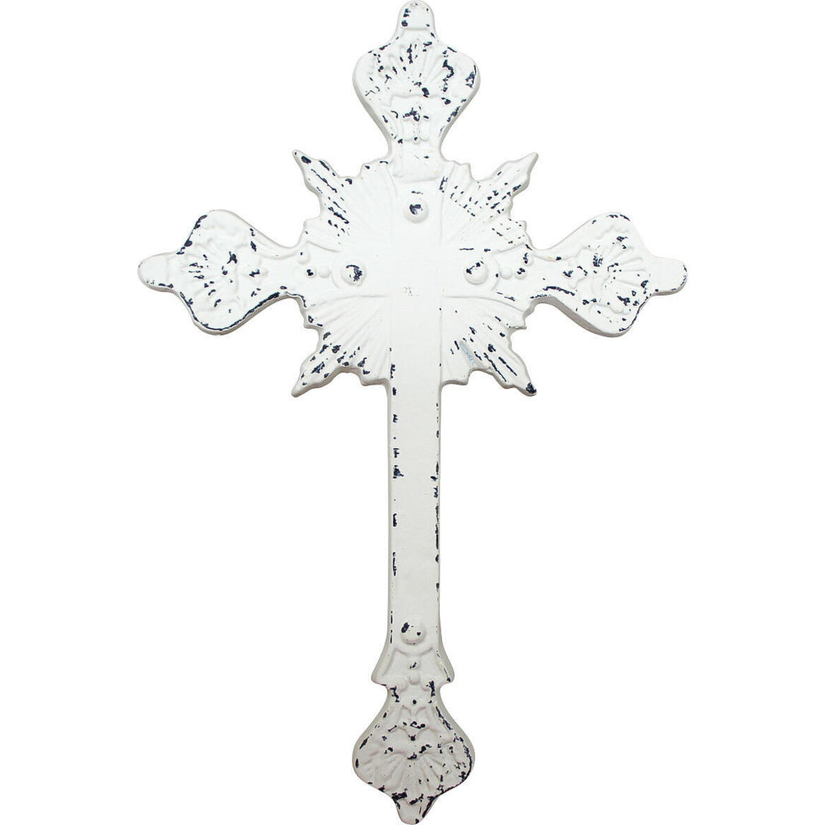 Made from metal and handcrafted to make it feel and look truly antique. This Cross features a white distressed metal body with a 28 cm height and 18 cm width that is in addition featuring one of the most divine of images that blesses your home. Add this to any wall in any space and feel its benign and benevolent presence casting its beauty and serenity all around. The distressed metal look, the white paint on the structure and the obvious antique look decidedly makes a difference to the way your interiors begins to loo. The top of the cross features a star like formation adding to the very Gothic kind of appeal it has. The beauty of the piece lies in its simple design and yet looking ornate. Add some heavy drapes, a rosary to complete its alignment with the spiritual and you could have a magnificent prayer space.