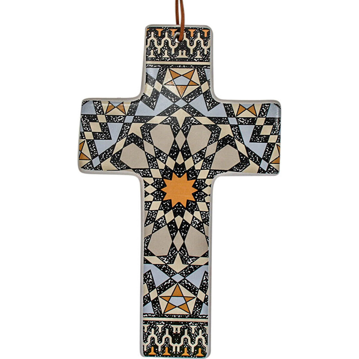 Embrace the exquisite handcrafted charm of the Cross Mosaic Lrg, a piece that artfully combines spirituality with artisan aesthetics. Each cross, measuring 14x23cm plus hanger, is a true testament to the skillful hands that craft them from high-quality ceramic. The meticulously designed mosaic pattern features a harmonic blend of geometric shapes and colours that evoke a sense of timeless tradition alongside modern design sensibilities.