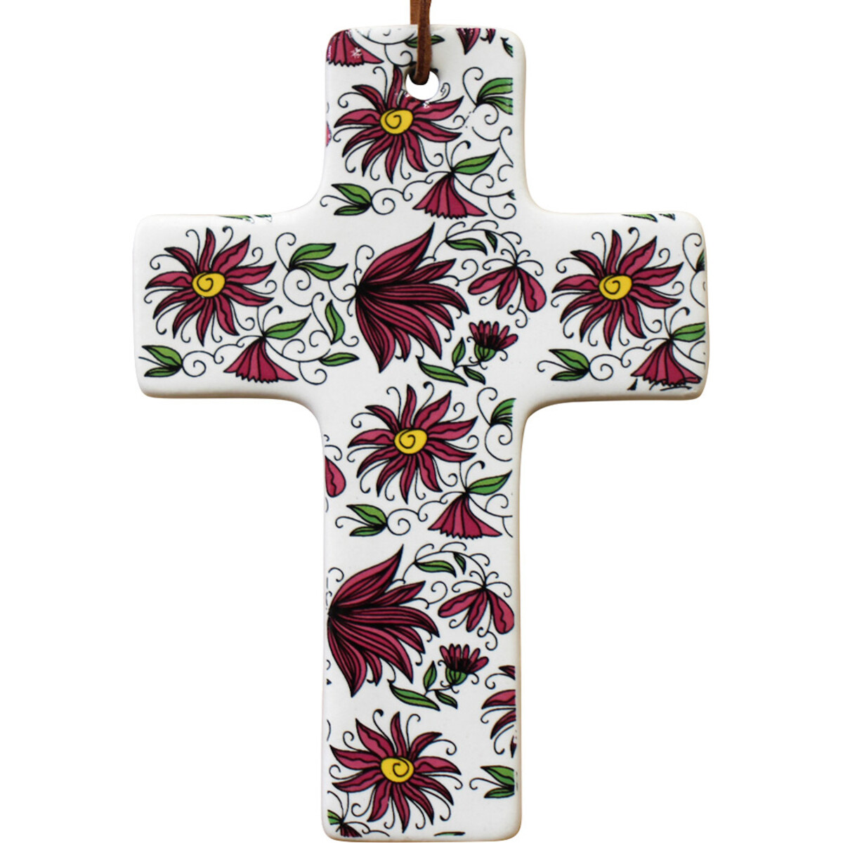It is white and adorned with a floral print that makes it look rather modern and chic. Unlike the typical Cross that has an overly religious appearance, this new avatar of the Cross has been designed to make it blend in with all things that you love around you- and in this case if it's the love of flowers that beckons you as much a s your spiritual side, the two have been brought together in one place. Smooth white ceramic forms the backdrop of the floral print that renders it truly unique in appearance. It's a size that will help you carry it through your prayers or when you wish to gift it out. You could in fact give it away after Baptism ceremony as a little favour to all who attend. Delightful in its simplicity and yet modern in its design, the most important symbol of faith comes to you in gorgeous new form that is sure to connect as much with your spirituality as with your aesthetics.