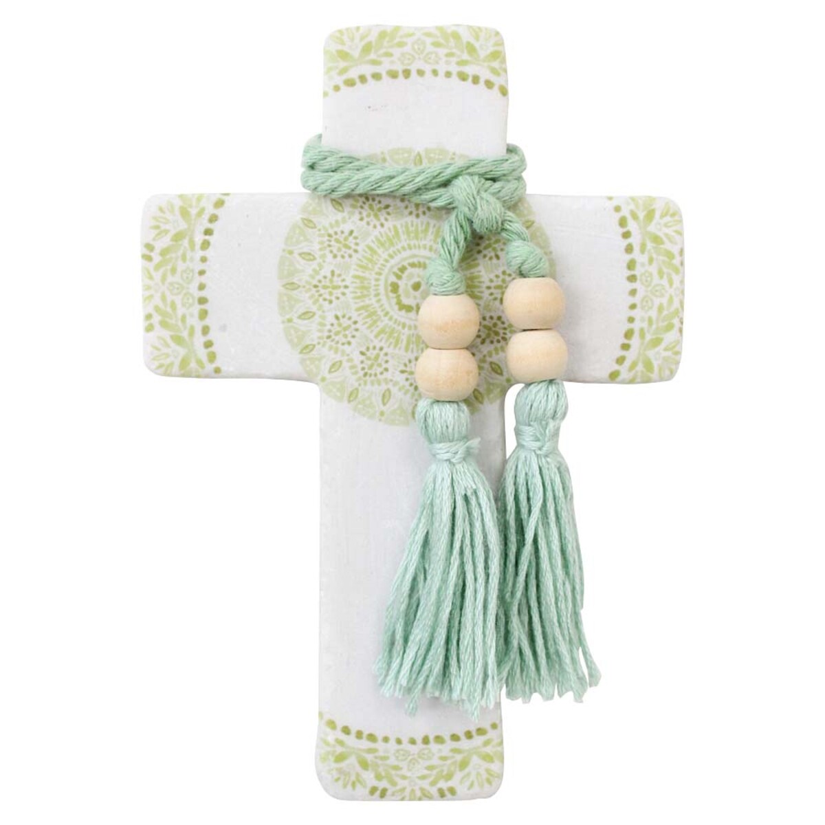 There’s something quite lovely about how the sage-tassel and bead embellishment brings softness to what is otherwise a solid piece - and these details make it easy to include in spring or summer displays if you want to add some movement or texture to your shop’s homewares section. This cross is good for Christian home decor, or just as an uplifting gift for anyone who needs something soothing in their space.