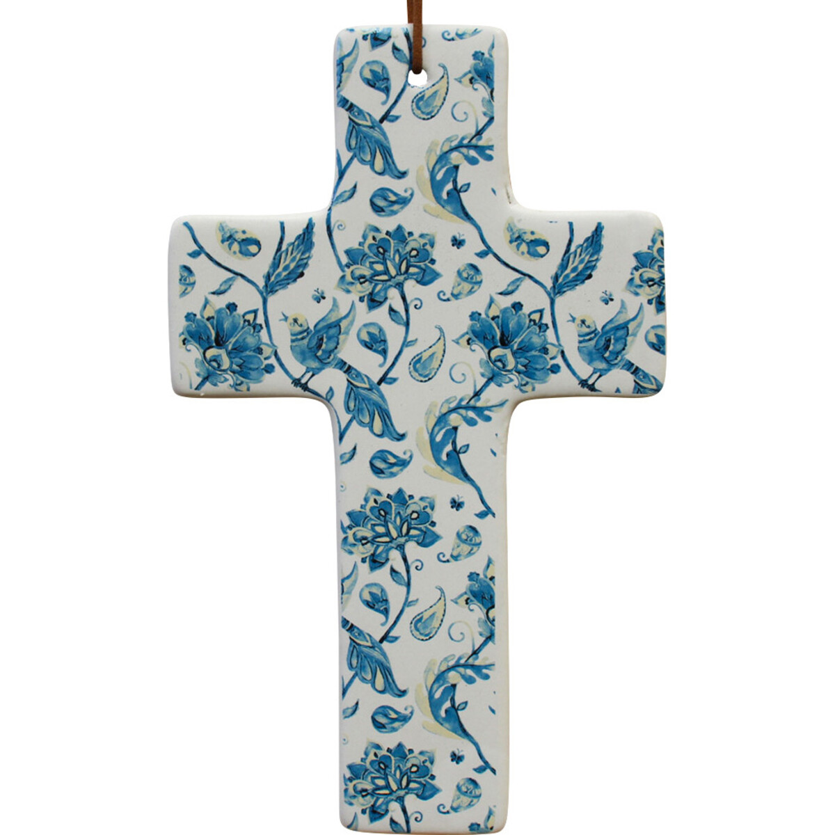 The Cross for many of us is that symbol that gives great deal of centring to our being. After all, it is in things of faith wherein lies the strength to carry on with adversities staring at our every living moment-it is in these symbols of faith that we seek solace and peace. Made of smooth refined ceramic, this delightful looking Cross is all of 23 cm in height and will look as great sitting in your prayer alcove as it would on any wall where you would like to build in a vintage kind of appearance. The face of the cross wears this gorgeous vintage look print in a blue that is rivetingly eye catching. The slotted twine on top will allow it to be hung from any place of your choice. Will make a beautiful gift for all who believe that their faith and their everyday living are intertwined. The expertise of the ceramic creator is evident in the superior quality of finish and the sheen on the article.