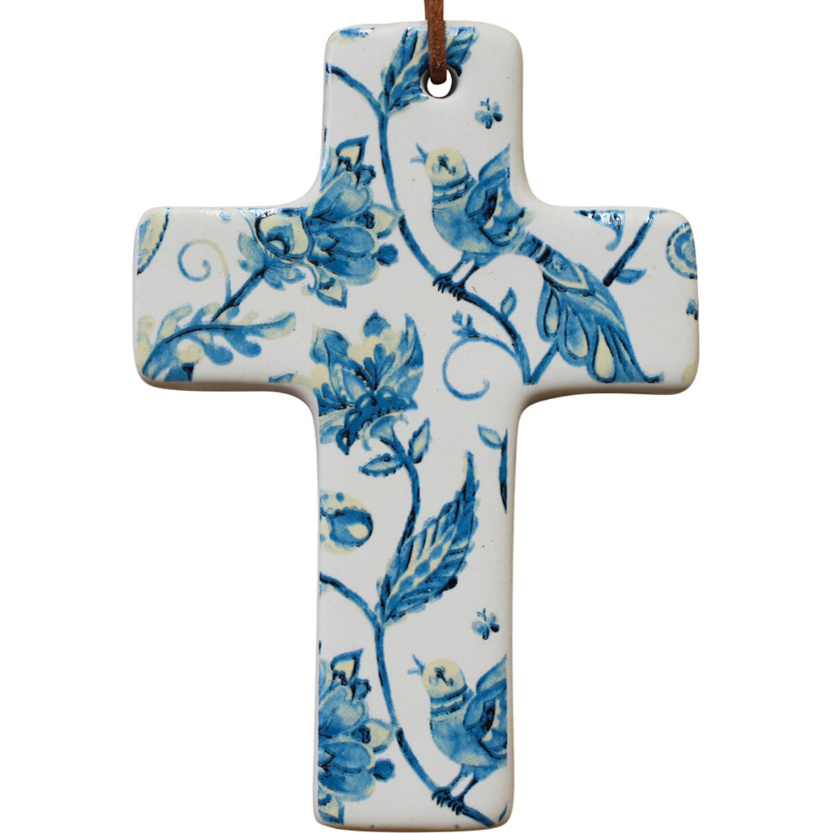 Made from ceramic. Beautified with a gorgeous blue vintage print-this little ceramic heart has it all to give you a wonderful and tangible presence of divinity. Created like all superior quality ceramic articles on offer from Lavida, it comes with its twine made of faux leather so that you could if you wish to hang it from a place of your choice. Or simply hold it in your hand as you part. Compact-the kind of Cross you could carry on your travels-place it in your purse and reach for it when needed. The kind that will leave you feeling peace and tranquillity just by its sheer presence. The size too makes it most usable-the kind that is as great for placing in your little prayer alcove as it is for carrying in your hand.