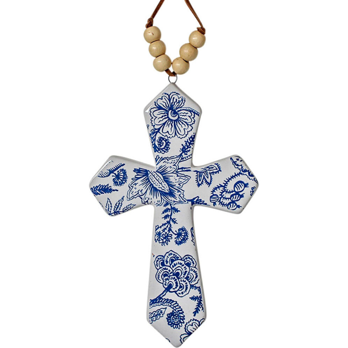 Handcrafted through ingenuity and with exceptional skilfulness, the Cross Beads Vintage Blue Small isn't just a hanging cross; it is the perfect example of just how visually captivating ceramic ornaments can be. As is the convention with top quality well purified ceramics, this ceramic ornament is made in such translucent smooth glazed finish to the point of glossy brilliance. It is then imbued with the chic motif of large, intricately patterned leaves and flowers which makes it suitable for giving a look of sophistication to interior decorations. Of course, it can be decoratively used in any part of the house in as much as it can be hanged. To make hanging it even easier, it comes with a pre-attached string which has 6 wooden beads on it.