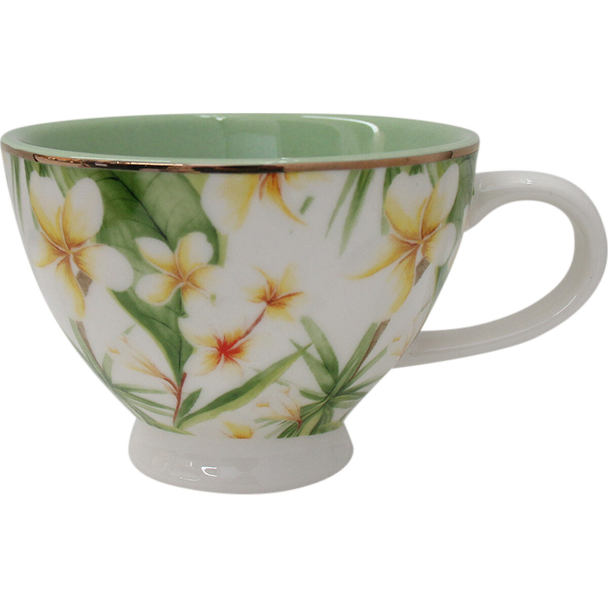 The elegantly decorated teacup brings to your a magnificent and impressive look. The insides of the cup are painted a muted shade of green which enhances the minimalist floral design on the outside. A very clever design- the white flowers blend in with the white base colour and the only visible shade is the vibrant orange in the middle. The print has been crafted to bring to you a subtle sense of elegance which works wonders when it comes to beautifying a space. The cup has been made strong with the amazing quality porcelain. It is made to last a long time and without any wear and tear of the beautiful print. You can add this cup to your kitchen so when you are having your morning tea before work, you get a nice visual delight. Or it even makes a pleasing gift for any occasions for your close friends and family.