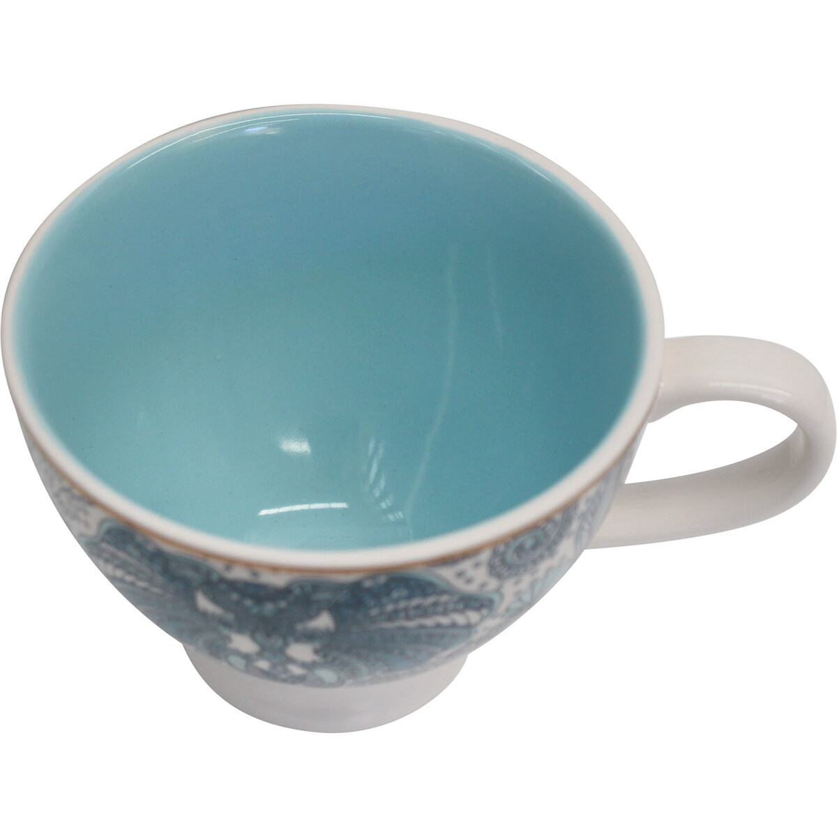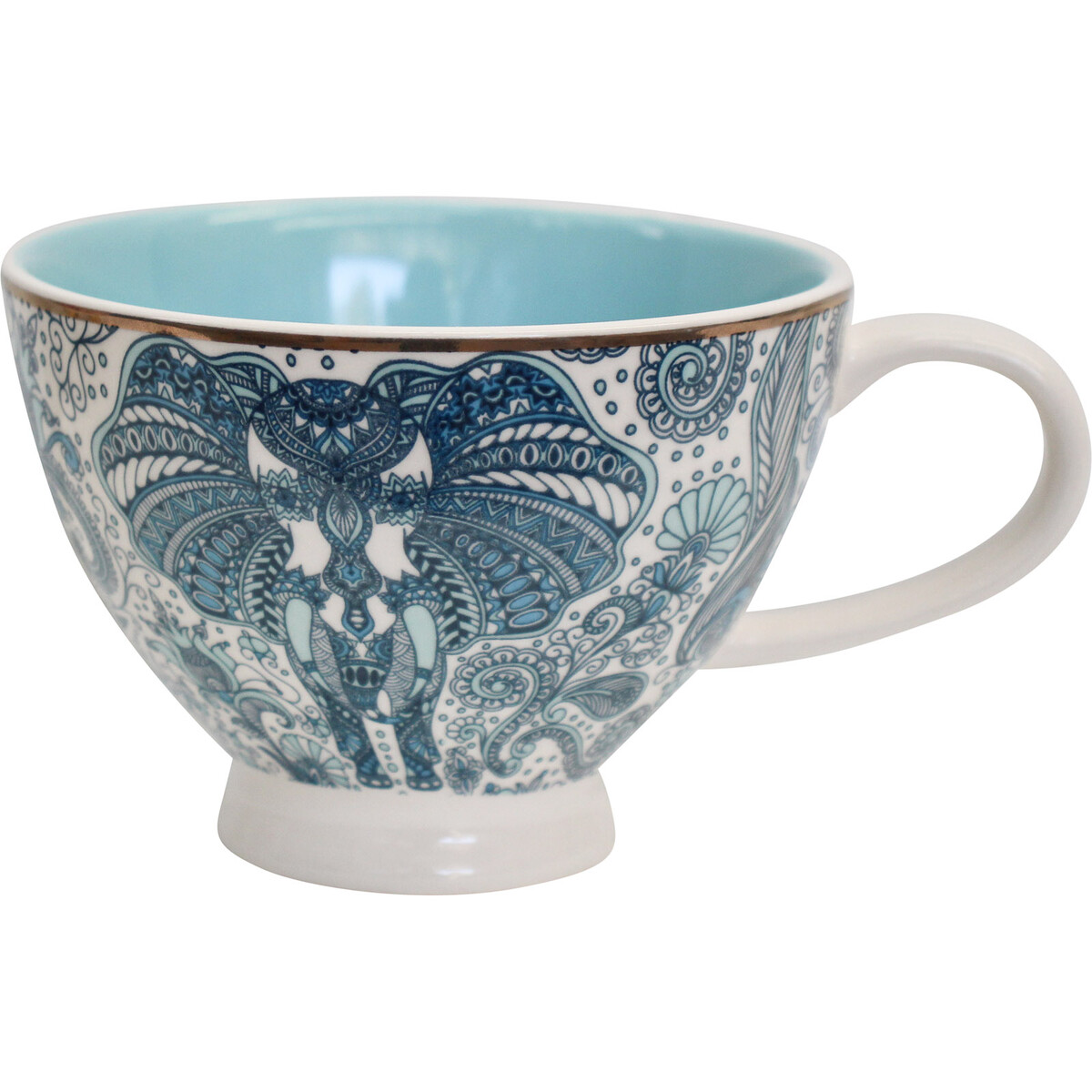 Elephants are the largest of all animals that live on land. However, before they become so big, do you know that elephants sometimes forage for food and eat continuously for up to 16 hours a day? It is these gentle giants therefore, that majestically decorates the sides of this porcelain made cup with their majestic presence. The cup has an interior that is beautifully hued in azure shade of blue while the exterior is a tapestry showcasing an elephant that stands in all grace and pride. It would be suitable for use in taking different kinds of drinks.