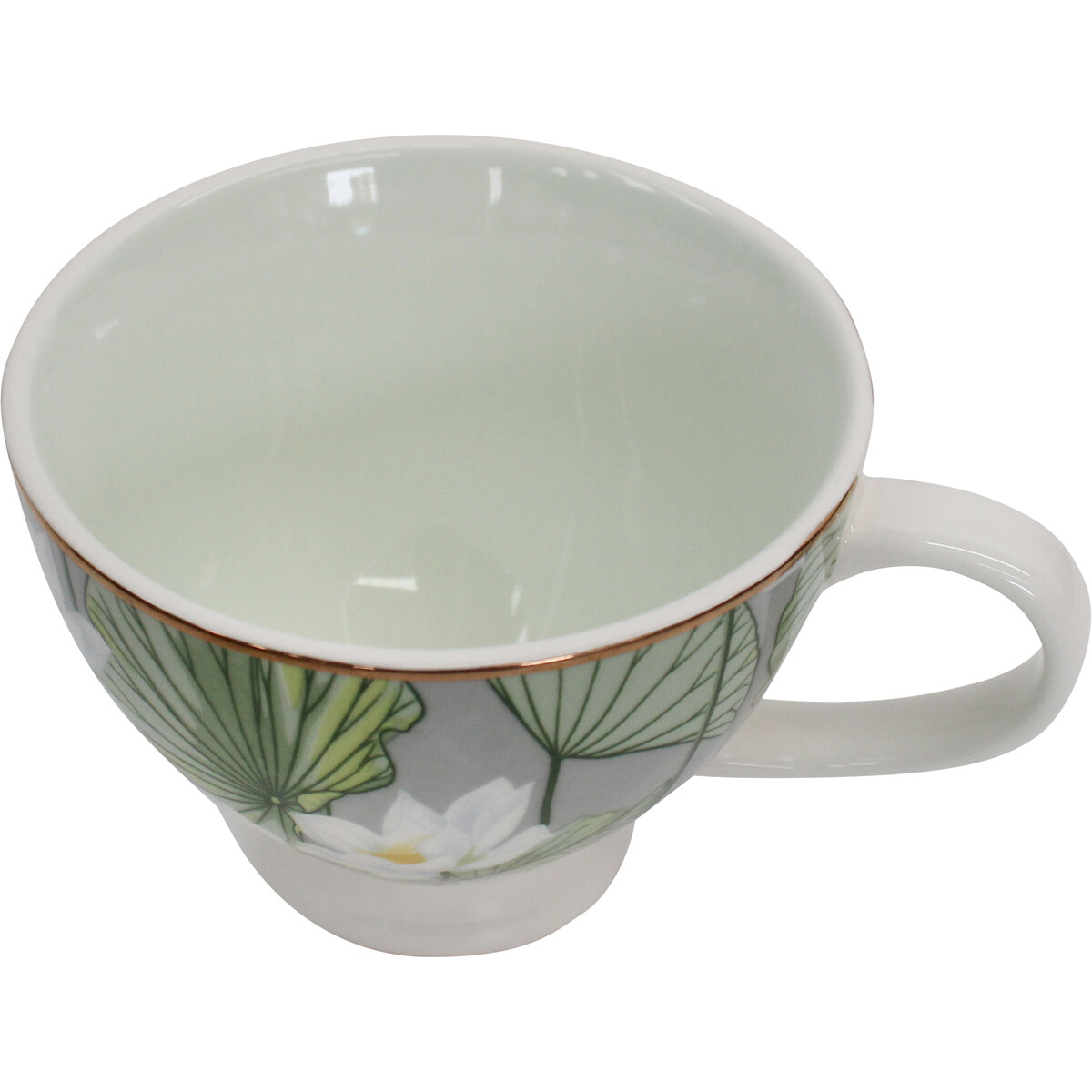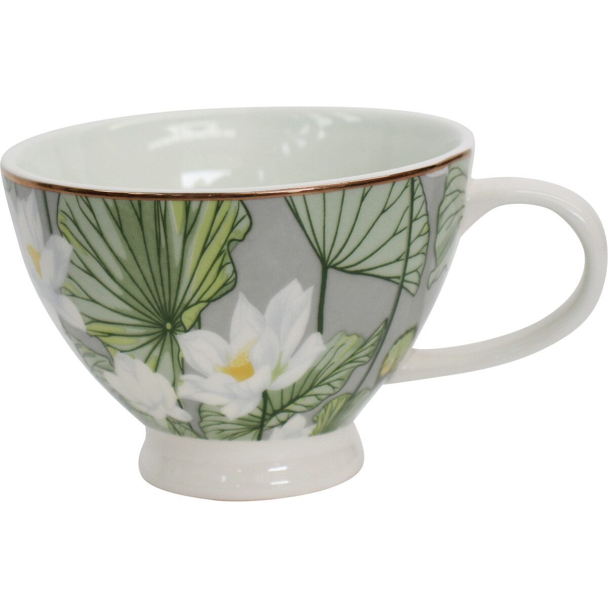The placement of the water lily decal varies from cup to cup which makes every single piece unique - not a flaw, but the beauty of handcrafted goods - which works well for collectors looking for special pieces. And let’s not forget how pretty this looks next to pastries or as a catch-all at your vanity. Fashioned out of porcelain and measuring 13.5x10.5x7.5cm, it’s perfect for enjoying coffee as part of your morning ritual or breakfast!