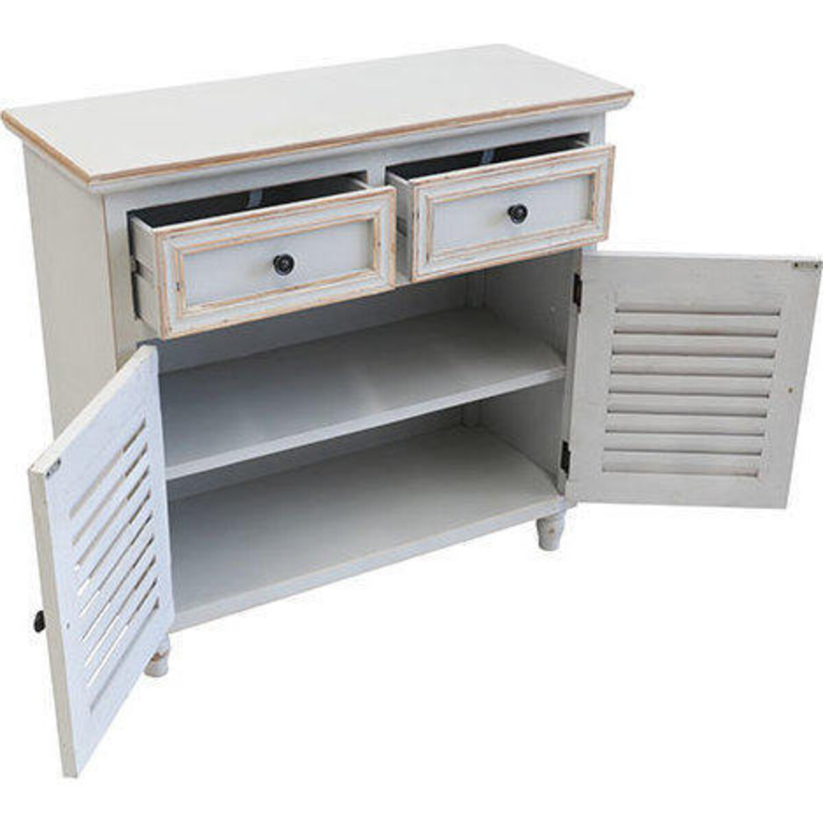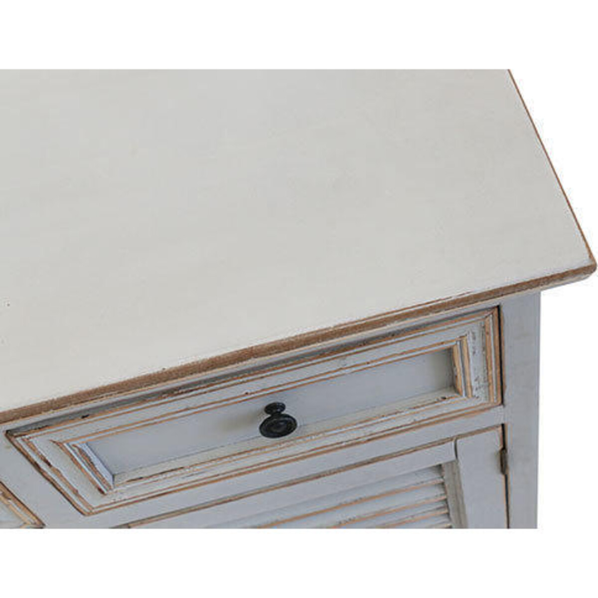 Cupboards are really an important space saving and utility based furniture in any home as they give you some kind of closet space in kitchens, study, the children's room or even the bedrooms, and so when they come with features as great as this piece does it also becomes covetable for its looks and the impact it creates in the spaces around. Very traditional in its definition, created from solid fir wood and with adequate space for storing a sizable number of things within. It has a cabinet at the bottom and two drawers on top. The height is at 76 cm and its length is 81 cm while its width is 33 cm. This makes it longish helping it hug the wall and not be too much in the way. The table top, the shabby chic antique look finish given to its paint work-all work towards making it look rather charming. The legs give it slight elevation off the ground making the cleaning of the floor underneath easier. The knobs are well placed and sturdy and the overall appeal is great for modern as well as traditional setups alike.