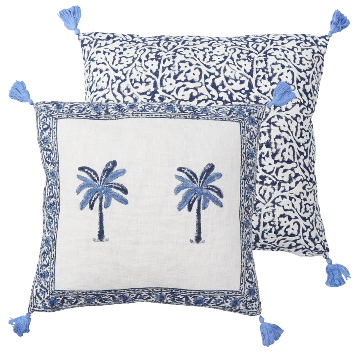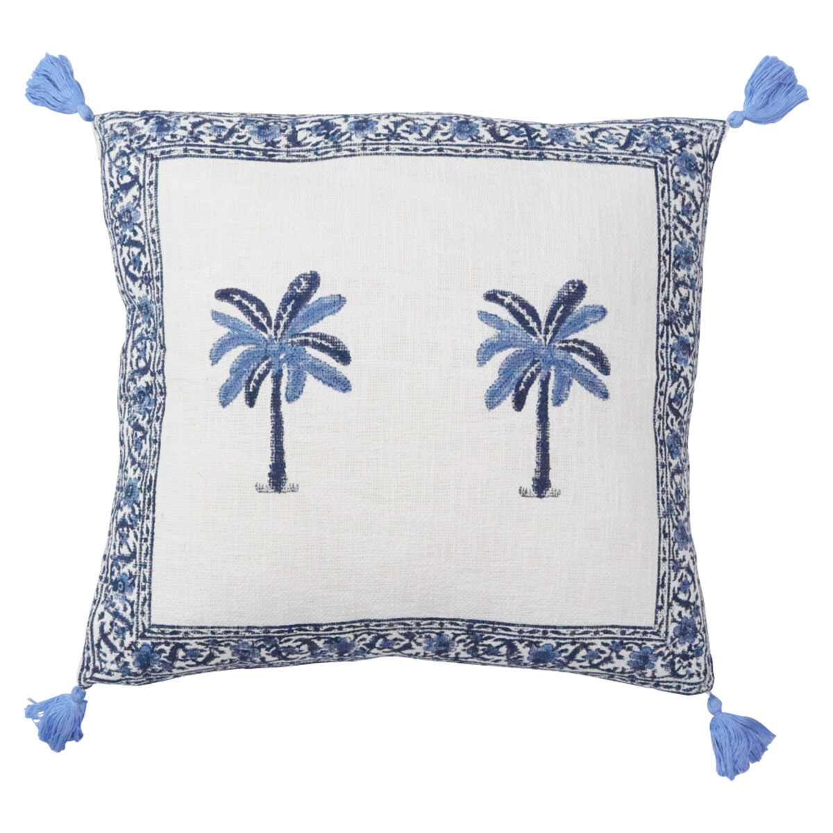 We're loving how this Cushion Bahamas combines laid-back, tropical style with a crisp, fresh palette. The hand block print palm design in blue against the 100% cotton cover feels just right for beach houses or anyone chasing a relaxed holiday vibe - and those tassels on the corners are a fun touch. It’s generously sized at 55x55cm and pairs well with both casual and coastal décor, so it’ll stand out as a statement piece that’ll keep customers coming back for more.