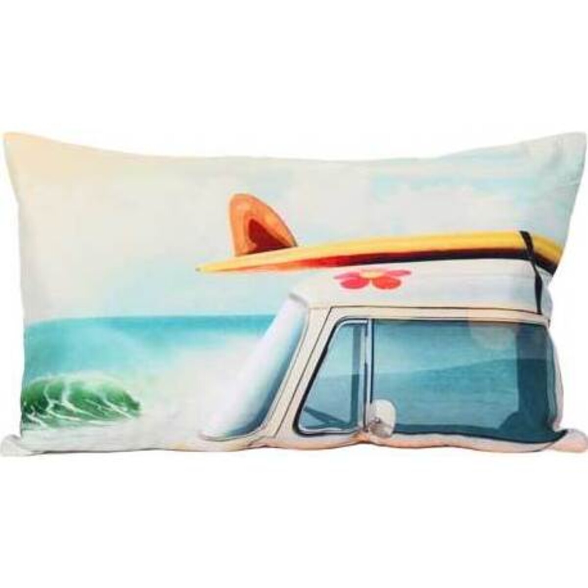 Cushions are a simple embellishment with a huge impact on the look and comfort of nay space. Homes can have multiple seating areas - gardens, patios, bedrooms, the children’s room or the formal living room area - and each can be given its own look with the help of colourful cushions such as this beach and surfing one. The beach daze truly sends you into an atmosphere of happiness and one can almost feel the sea spray and salt soaked wind on one’s face. The lovely blue of the ocean, the foam on the wave - the bright surfboards and the sandy beach have all been captured perfectly through colours and composition.