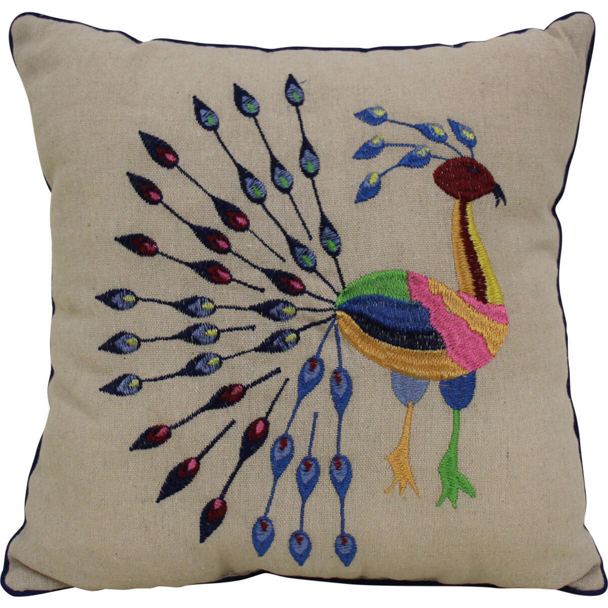 Adding cushions help us introduce comfort and style into our spaces and through them we can easily add more colour and vibrancy to our spaces- and this is proved true with the help of this definitive addition that you could choose for your bedroom or living room. The embroidered face of the 30 cm square cushion is a play of various colours. Machine embroidered threads in various colours adorn the face coming together to bring out the beauty of the dancing bird peacock. The usage of multitudes of colours is tribal in inspiration and yet will find a perfect fit in any space. The whiteness of the backdrop makes it sober down to the level of any décor's usage. Cotton and polyester have been used as the base material. The seams are tough and sturdy and will withstand much wear and usage. The off-white colour that forms its base adds to the beauty f the multicoloured bird design that makes this such a unique cushion to add to your couch or bed. Can tea up well with solid coloured cushions in the similar shades as seen on it-be it bright yellow, aqua blue or green -it will help off set the beauty of this design perfectly.