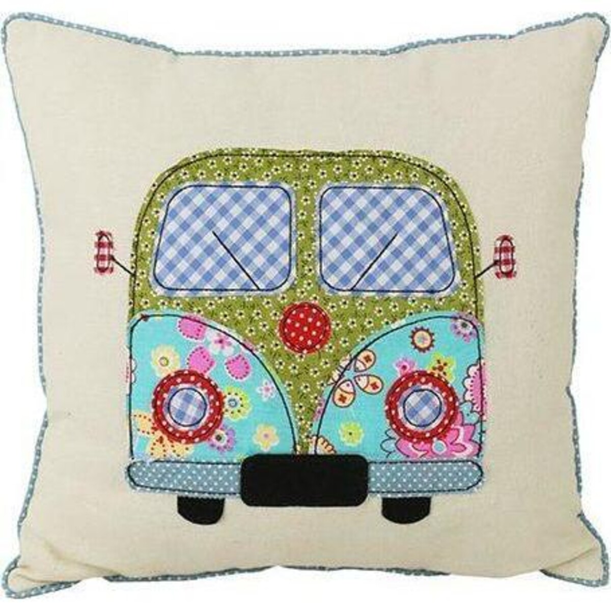 This square cushion with its blue polka dotted piping is a lovely way to add that angle of adventure to your child's room. The van that ahs so many colours on it seems to be ready to go for a ride of adventure waiting as if for people in the room to hop into it. The white cotton cushion has this pattern of the van appliqué don to it which gives it rather lovely texture and feel - the kind that the child will love to touch and imagine as a real thing. The stitching of the appliqué as well as the asides of the cushion is very strong and despite much usage there will be no fraying and untidiness. Add this van cushion as well as many such happy looking patterned cushions to the child's room that have been especially created by Lavida to make their room seem like a haven of wonder and comfort.