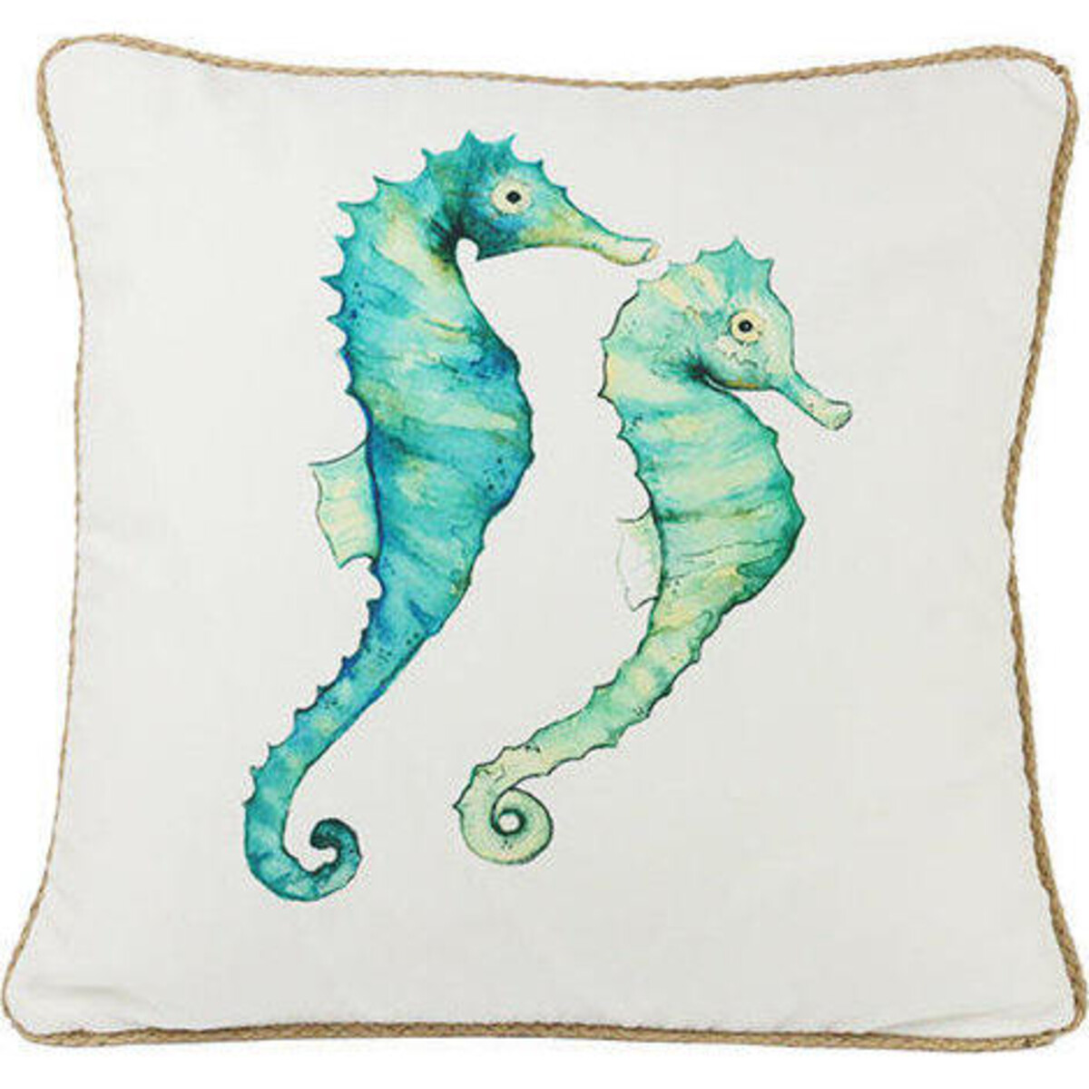 Cushions work doubly to add comfort as well as to help get your home to look colourful and in synch with a certain theme and this gorgeous marine themed one featuring two graceful seahorses should be ample evidence of how dutifully these cushions enhance your home's look. The square cushion has a resilient structure that has been further strengthened and reinforced with a beige natural jute fabric piping that runs along the edges giving the piece a certain definition. The colours are refreshing and subdued yet will lift the space with their natural feel. Could be added to couches or beds alike and could be teamed with colours galore - from the brightest of turquoise to the mildest of greys and blues. The fun one can have with throw pillows can never quite be quantified. The replica of a water colour painting is printed on the cover which adequately brings out the magic of aqua colours to the fore. A wonderful addition to any room or space.