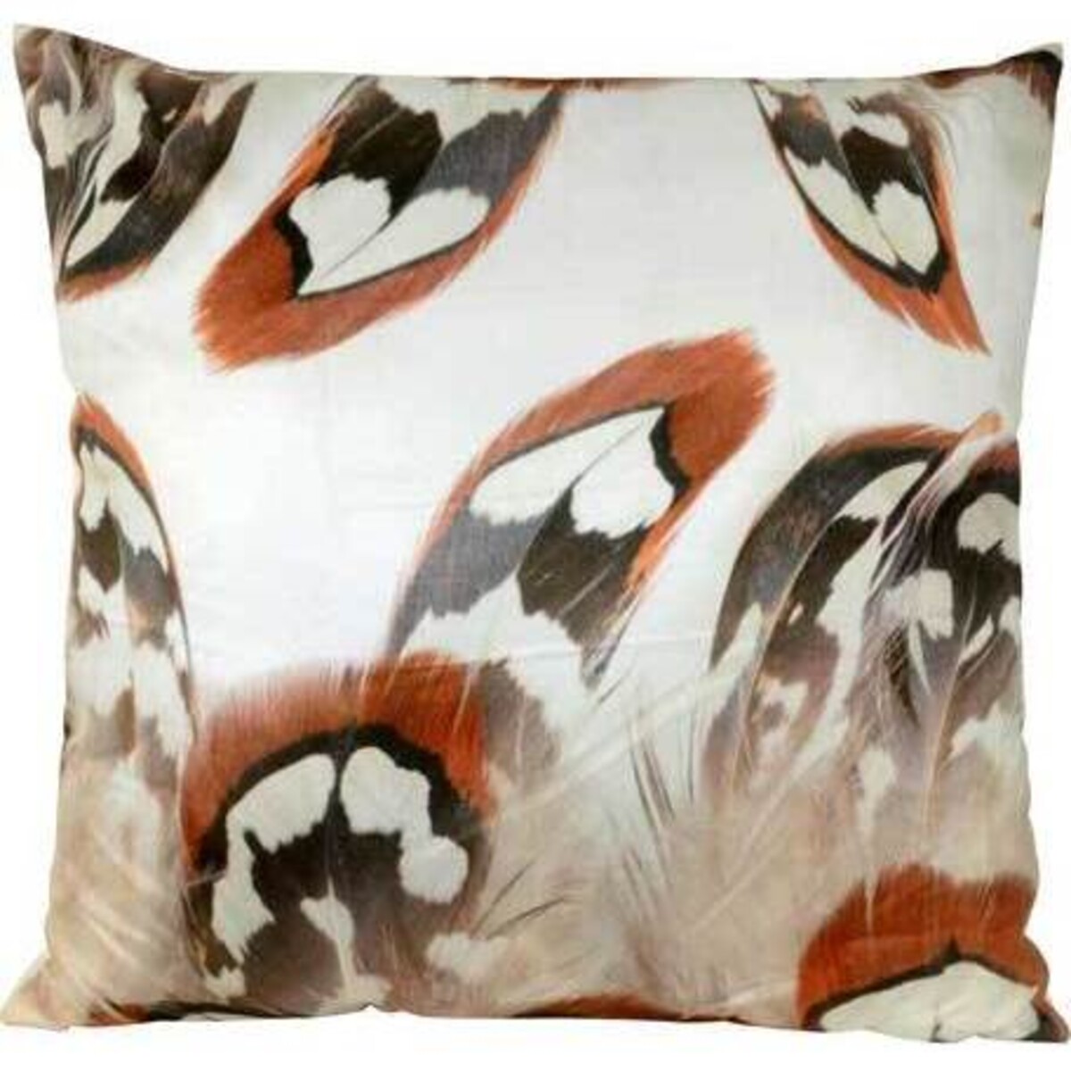 Cushion are an easy way to include plush luxury into any kind of exteriors and when they come in prints and textures as luxurious as this, their value doubles manifolds. This is an exceptional little addition that could be teamed with cushions in plain shades that compliment its earthy tones-the feather pattern would make the space look more airy, soft and suggest an experience of soft comfort. Made from high grade velvet ?the filling is soft, yet firm enough to give ample support. About 18 inches in length and width, it's the perfect accompaniment on the couch on evenings when the only thing on one's mind if unadulterated relaxation. An ideal companion also on the bed that needs a little fresh usage of imagination-cushions such as this could build in some theme and flavour with their soft presence.