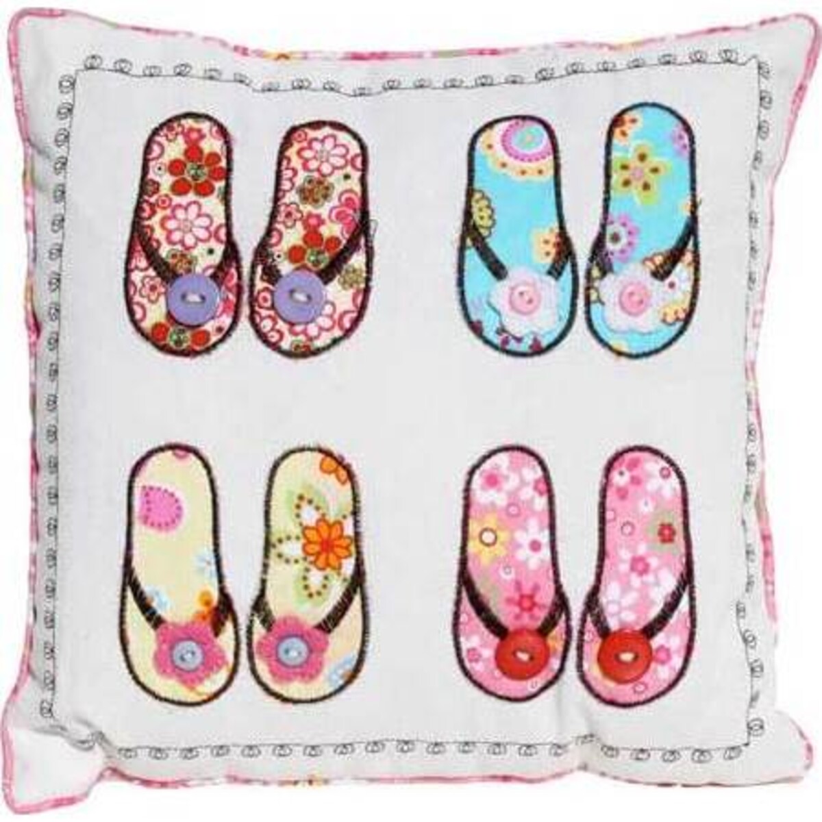 This Flower Thongs Cushion pays homage to your love of the footwear, and in fabulous style. The off-white pillow has a pink border, and features four pairs of thongs in different fabulous floral prints and button detailing. They're perfect to put on your couch for summer, or to use on chairs on your front porch for when your friends stop by for a glass of lemonade. The cushions are sure to brighten up and add a little sizzle to even the most neutral coloured spaces. Expect to get plenty of compliments on these cushions with many asking how they can get them for their own.