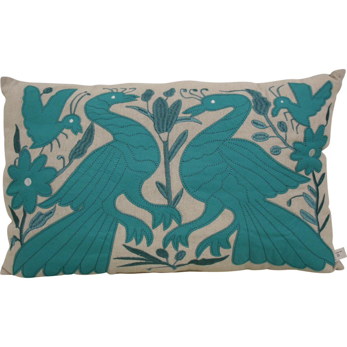 Add the beauty of colour and pattern with the help of this gorgeous cushion made from cotton fabric and appliqued in the most intricate of manners. Created as an inspiration from folk strains that are often filled with allegorical references, here is a cushion whose face depict creatures and element of nature in the same manner. Made from superb soft feel cotton fabric, the neat applique design is attached on the face of the frontage with polyester thread which gives the cushion a neatness and durability to its design. The soft blue colour looks summer cool against the off-white backdrop. Butterflies, birds and flowers and vines adorn the face of this rectangular cushion that will fit in with modern settings as much as with traditional ones. The delightful design is the kind that will blend in with cooler colours in the setting or will combine with plain cushions that could be placed around it to help draw attention to the design on this piece.