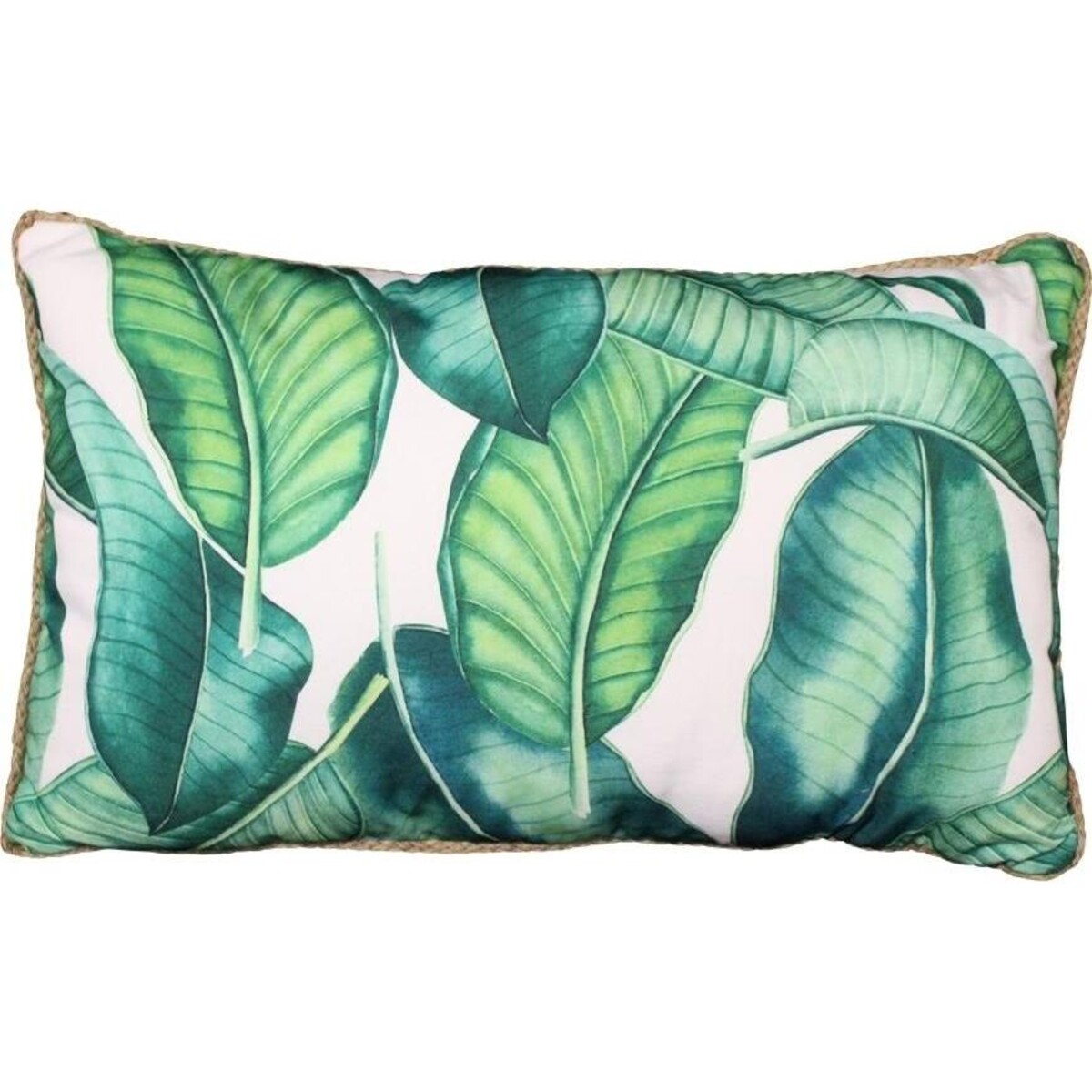Cushions are a great way to introduce design and detail into setting as they bring n tony colour but with their patterns and shades add depth and dimension. This rectangular cushion comes with a gorgeous richly hued tropical print in several shades of green that shows off the broad leaf of a plant in all its glory. The beige canvas trim adds to its utterly lush earthiness. The soft satiny backdrop helps create a wonderful luxurious feel. The rectangular cushion would look especially well placed if it is set up with solid colours like turquoise and whites and yellows that would do complete justice to their richness. The bold leafy print is a stunner in terms of detail and density of colours adding to its charm. place it alongside square or round cushions and give its shape more of a distinct look. A definite choice in case you love the look of warm tropical climes.