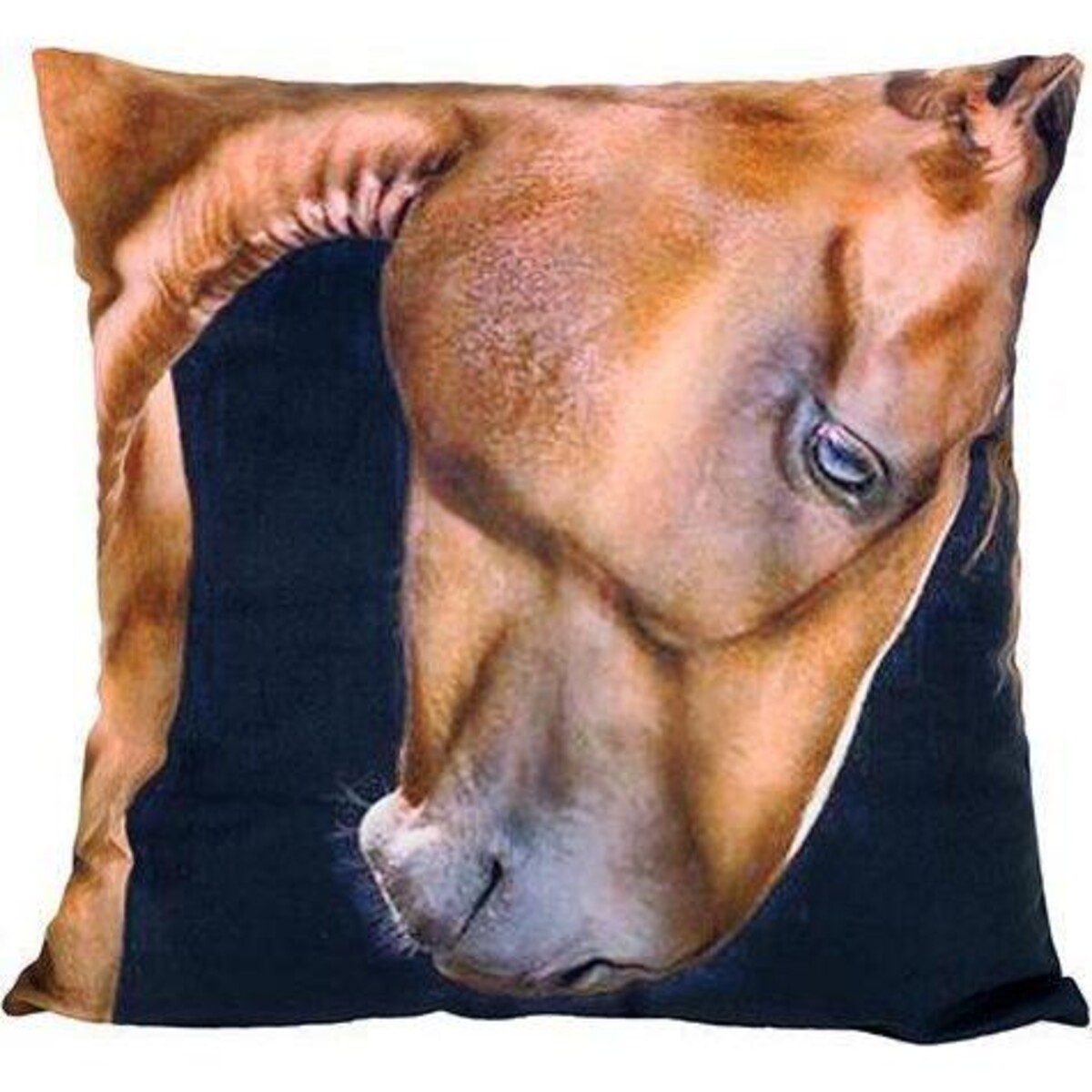 Cushions have faces and they carry on them imprints, designs and the works and thus can convert quite easily an easel like space. Here the face has been used to print those most handsome of horse faces that will be loved by all who love their steed and care deeply for this animals ?gracefulness and strength. A picture of dignity, this velvet cushion brings out through it superior quality prints the masterly use of digital printing on velvet. The usage of this rich fabric gives the colour tones a certain kind of richness that one can only get on this sort of density. The square cushion has a dark hue and will coordinate well with cushions I solid colours. The dimensions of the cushion is 45 cm making them perfect for armchairs, sofas and even the bed. Team it up with forest and nature themed cushions or place them with other horse prints and you would have given your space a dramatic facelift. Soft, lushly luxurious and very vibrant.