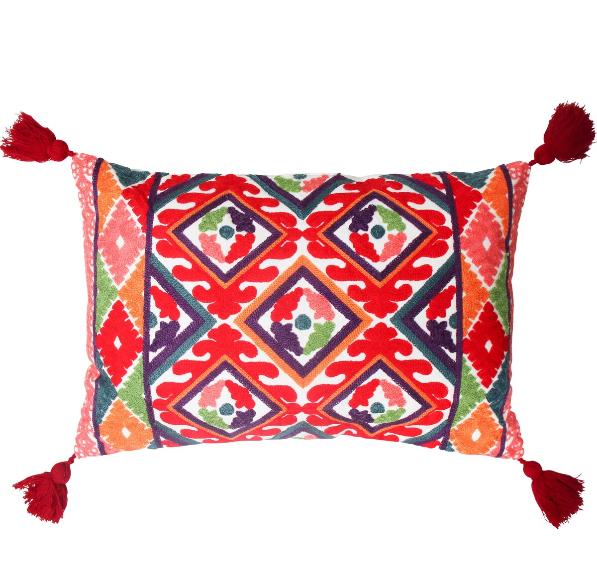 Choosing the right cushions and soft furnishings shouldn't be a tedious, tiring exercise for your customers. This is why we have recently updated our stock of Wholesale Cushions of which this Cushion Jumping Castle is one of our customers' favourite given its enduring visual appeal and practical cushioning functionality. It is made in a long shaped design while its four corners are ornately decorated using tassels which dangle beautifully. The cushion is elaborately decorated in various adorable patterns using different bright shades of colours such as red, green, orange, pink, white, etc.