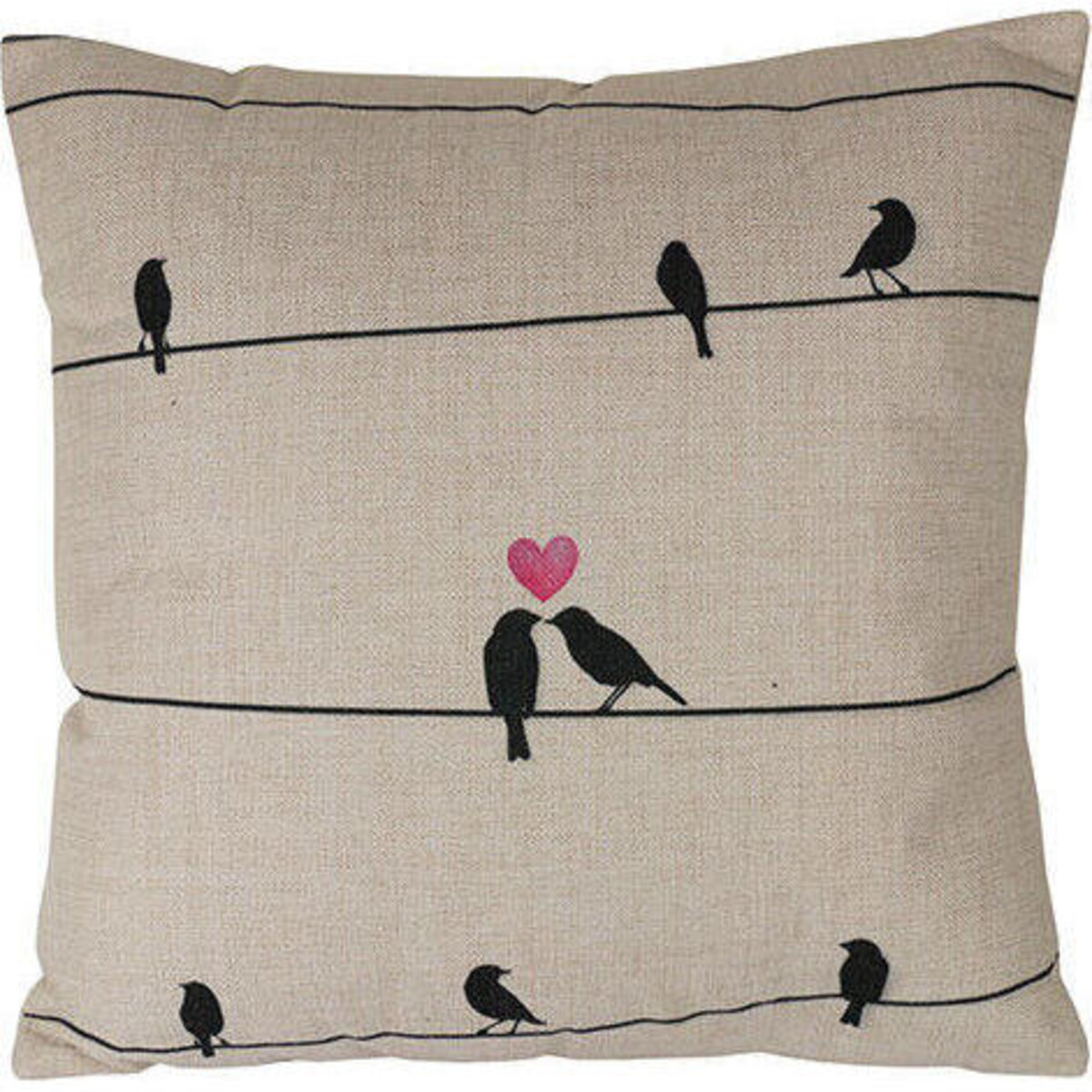 All white with several dark silhouettes of tiny little birds making the monotony of ivory colour come alive with more fun-this linen cotton cushion has the ability to blend in with all kinds of decor and create lovely relaxed ambience that will be much in keeping with the rest of the décor-soft colours-muted enough to be combined with brighter more dramatic designs. This linen cushion comes in sizes that will be great for the living room, the children's room, the bedroom and any such space that could need some more love and a more relaxed air. Linen is a sturdy fabric that will retain its colour and shape despite much usage. The cushion has been finished perfectly with tough seams and with solid natural colours that will remain fade free for very long. The cotton and linen combination makes it very natural in touch and feel.