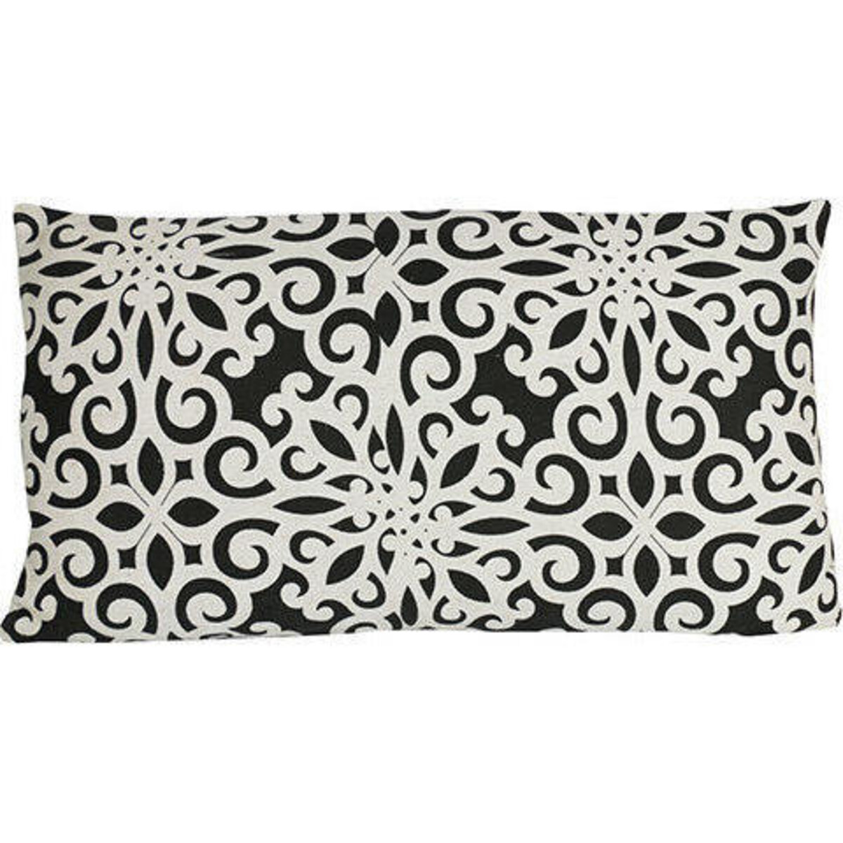 Add the boldness of monochrome pattern to your seating and see a dramatic change in rings about. The repetitive tile design like intricacy of this Moroccan design cushion will lend your space just the right impact making nuance that will set it aside. Add this to your décor and feel the eyes riveting to its attractiveness. This cushion is fashioned from hardy cotton and polyester blend fabric that will make it not just resilient to much usage but will also allow the print to remain fade free even after much usage. The rectangular cushion will be just the right contrast in design and colour to any other solid coloured cushion you may wish to add to the décor. The length of the cushion is 60 cm while its width is a mere 33 cm making it a lovely diversion from the usual square or round versions that are more common. You could use a variety of such shapes and patterns in such throw cushions and bring in the Moorish charm of the design to its maximum effect.