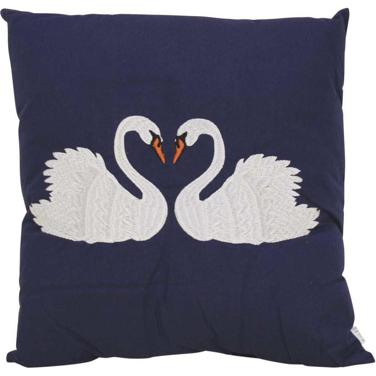 Give your home more of a style check with cushions that make them feel and look ore comfortable. Here is a beautiful cushion created from superior quality cotton and polyester with an applique pattern showcasing two white swans, the soft cotton and the navy blue and white combination adds a touch of classic colour choice to your space, while the swan symbolism can only be called charmingly old world.