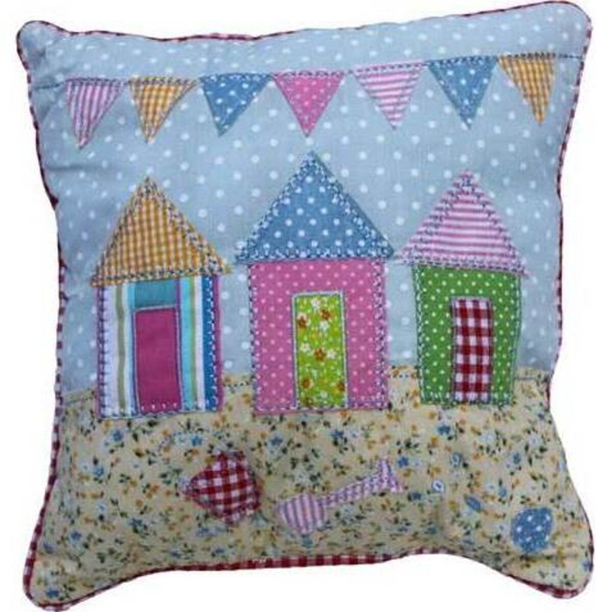 The Pastel Beach Huts?Cushion is a must have cushion that illustrates creativity and imagination. Decorating a room will definitely be much easier with this colourful cushion. The overall design looks as though it is made from quilt. The simplistic photo the beach hits with sand are truly captivating with its rich blend of oil pastel shading. Its combination of texture and warm rich vibrant colours will be sure to enhance any furniture set. If you have customers who are looking for great gifts, then this too will be a wonderful option. This cushion will make the perfect gift for just about anyone as it truly has no boundaries. The Pastel Beach Huts piece will certainly delight any customer with its attention to detail and uniqueness.