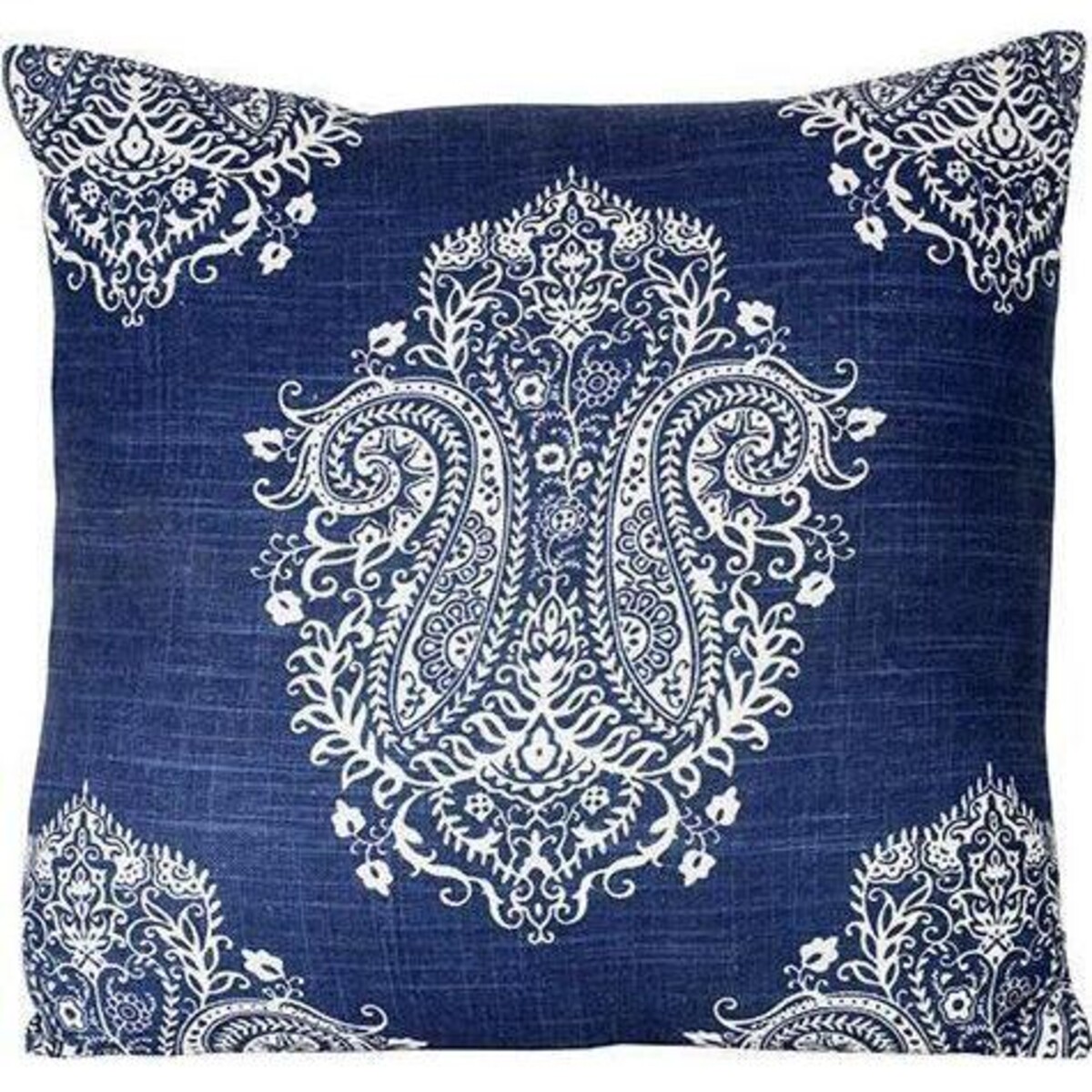 Traditional designs and colour palettes never quite go out of style and this lovely cushion with its intricate Persian blue paisley design is something that will leave a huge impact on the way your seating will look. Could be added to sofas and couches, armchairs or a settee and could be teamed with solids as well as paired with similar cushions as well. Will look especially wonderful when placed n lighter coloured sofas so as to highlight the colour that adorns the face of the cushion. The soft feel of the fabric, the strong stitch that makes the seams strong and durable and the finish of the cushion -are all features that gives it a wonderful look. Th very organic feel of the cushion itself is what makes it so special as it has a combination of cotton as well as linen. The gorgeous paisley pattern in white is another feature that starkly makes it a great winner in design aesthetics.