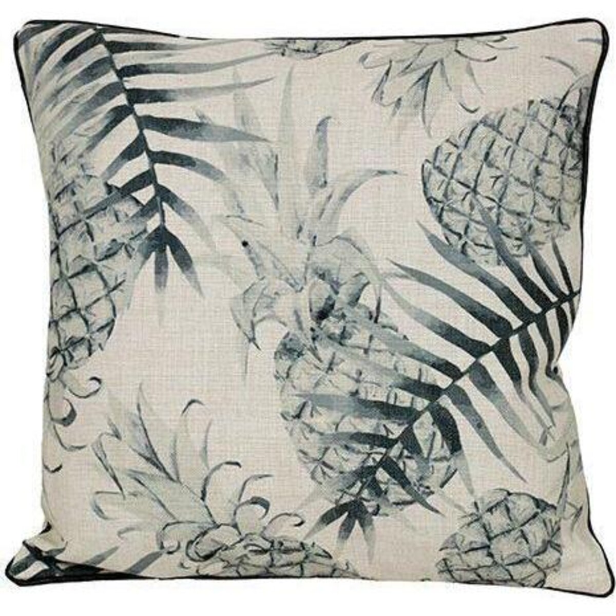 Splash some tropical revelry with this pineapple design printed cushion that showcases the fabulous new styles for home décor available on Lavida. A simple inclusion like this will set the trend for the rest of the décor. The energy of tropical prints are a great way of adding a certain vibrancy to your home and spaces. Add this white and deep grey patterned cushion and feel the difference it makes not just to the comfort of that space but also to the overall appeal. The high quality linen fabric ensure that the print looks colour rich and very intense and the leatherette piping adds that touch of sophisticated and a fine finish to its look. Add solid coloured cushions in white or other brighter shades to offset the beauty of the print. Would be as great to work up a new look in the living room as in the bedroom or the garden chairs. Use such cushions liberally and infuse your home with fresh new feel.