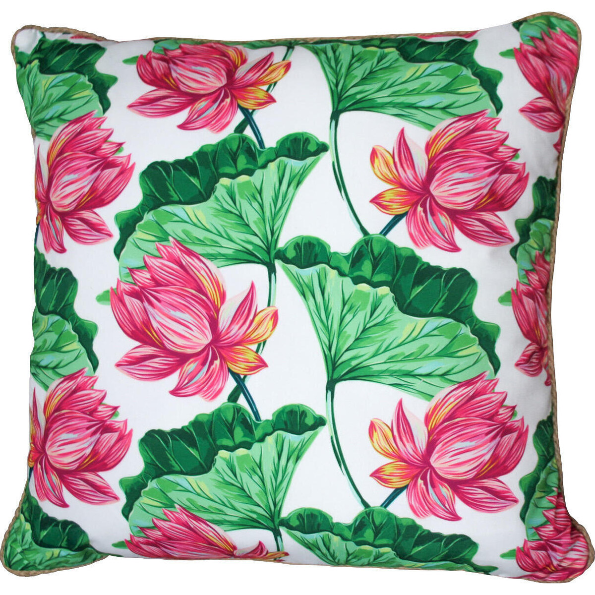 Adding cushions as vibrant and colourful inspires you to make and create more changes to your interiors thus refreshing their look fully. And here is one such cushion that will inspire such a change, made form very high-quality polyester the colours and the water lily print feels fresh and summery will combine wonderfully with solids in green and pinks and always with more tones of whites. Place it on couches outdoor gazebo seating or in the bedroom and add a few potted plants, copper vessels and you could have gotten your self the most exotic looking setting ever. The 45 cm dimension square cushion has bene crafted with canvas piped in a subtle way and filled with softest polyfill to give a beautiful soft and comforting presence on any seating space of your choice.