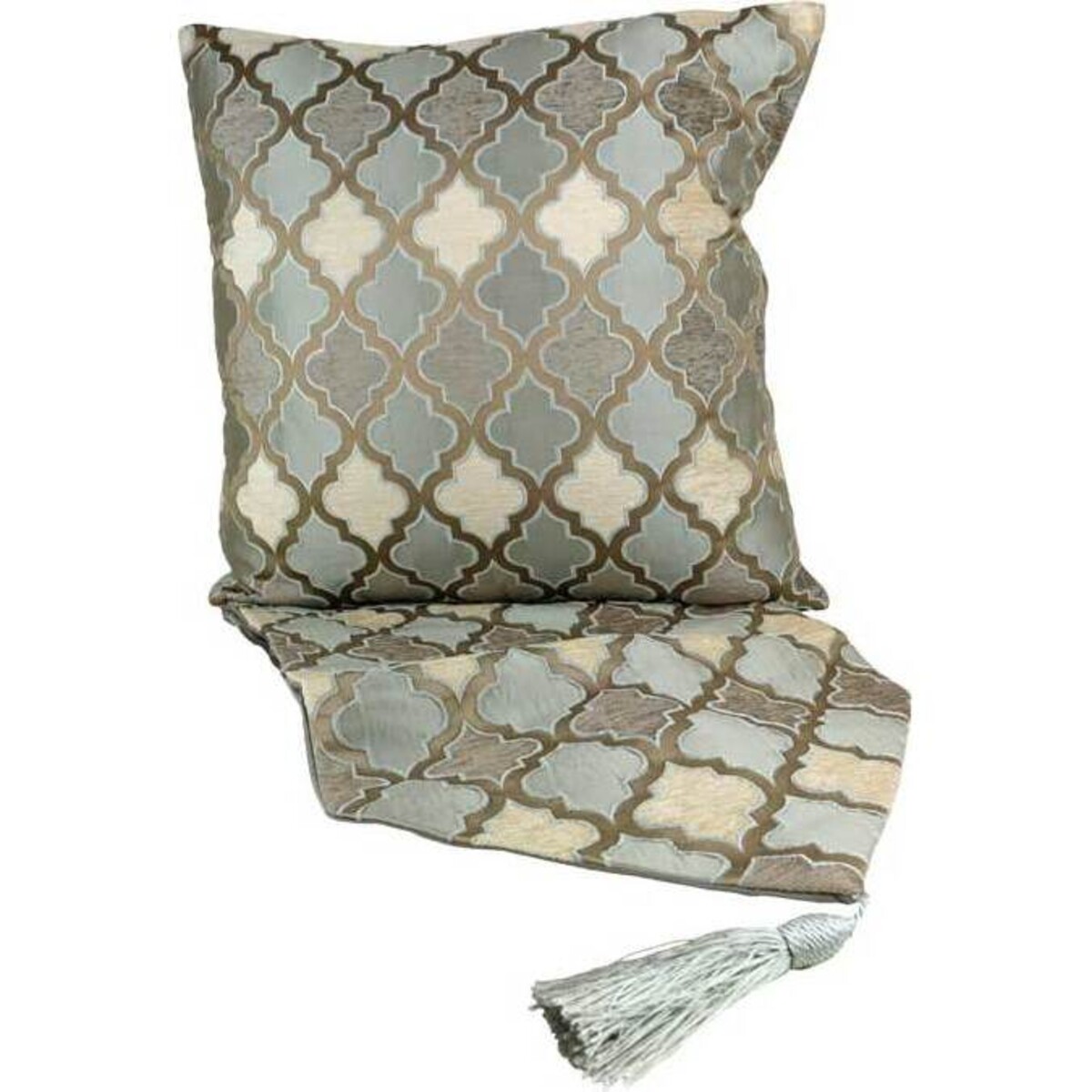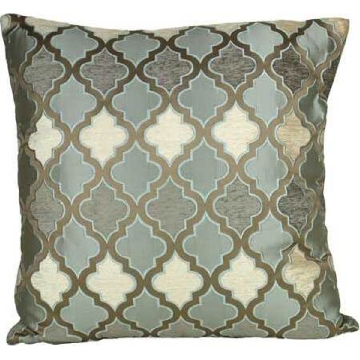 Cushion Quatrefoil Silver has measurements of 44x44 cm and is made using cotton and viscose. It confers a feeling of gentleness when held under - arm or rubs against the body. The silverfish material with which it is designed brings a warm and cosy feel to a person during seasons of coldness. One may buy a couple of these cushions for use with couches located in the bedroom, living room and garden sections of the home. The Quatrefoil pattern employed on them communicates a special ambience that can blend well with most common forms of furnishing items present within many residential settings.